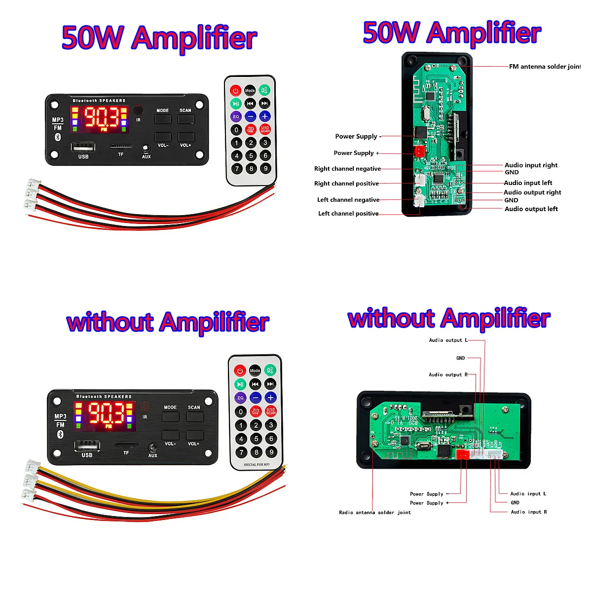 Плата декодера проигрывателя 50 Вт, 5-18 в, Bluetooth, 5,0, TF, USB, AUX, WMA