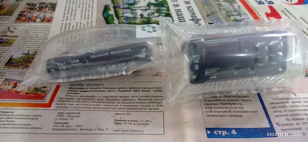 Отличный плеер, тянет колонки от центра по ощущениям ват 15 советских даёт, работает от 5 до 12 вольт, лучше питание брать 12 на 2 ампера или выше что бы на максимум качал и не заикался. Доставка быстрая. Упакован в вакуумный пузырь 10 балов