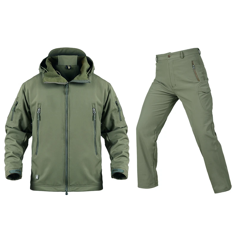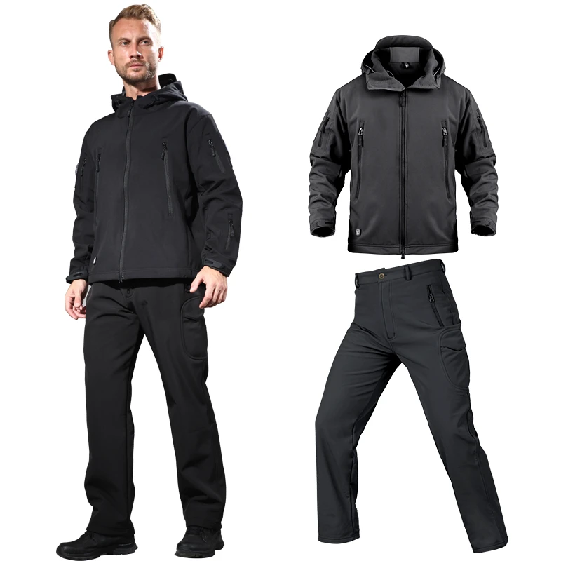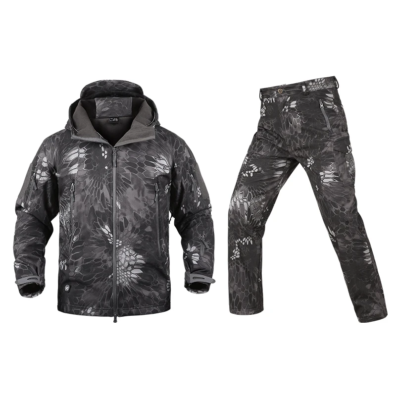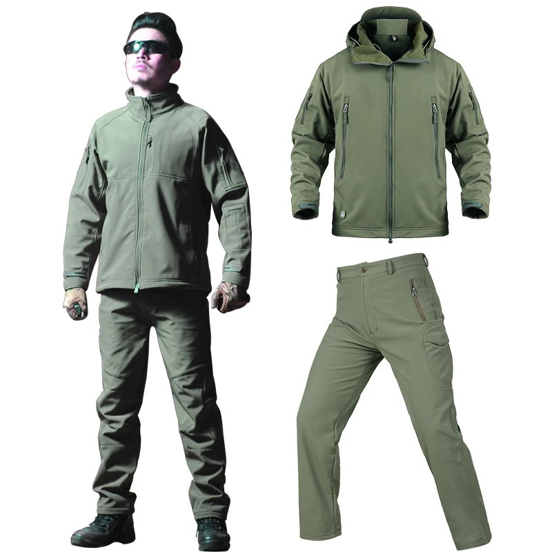 Комплект тактической униформы из мягкой кожи акулы, Мужская водонепроницаемая ветрозащитная флисовая куртка, камуфляжная ветровка, армейский костюм