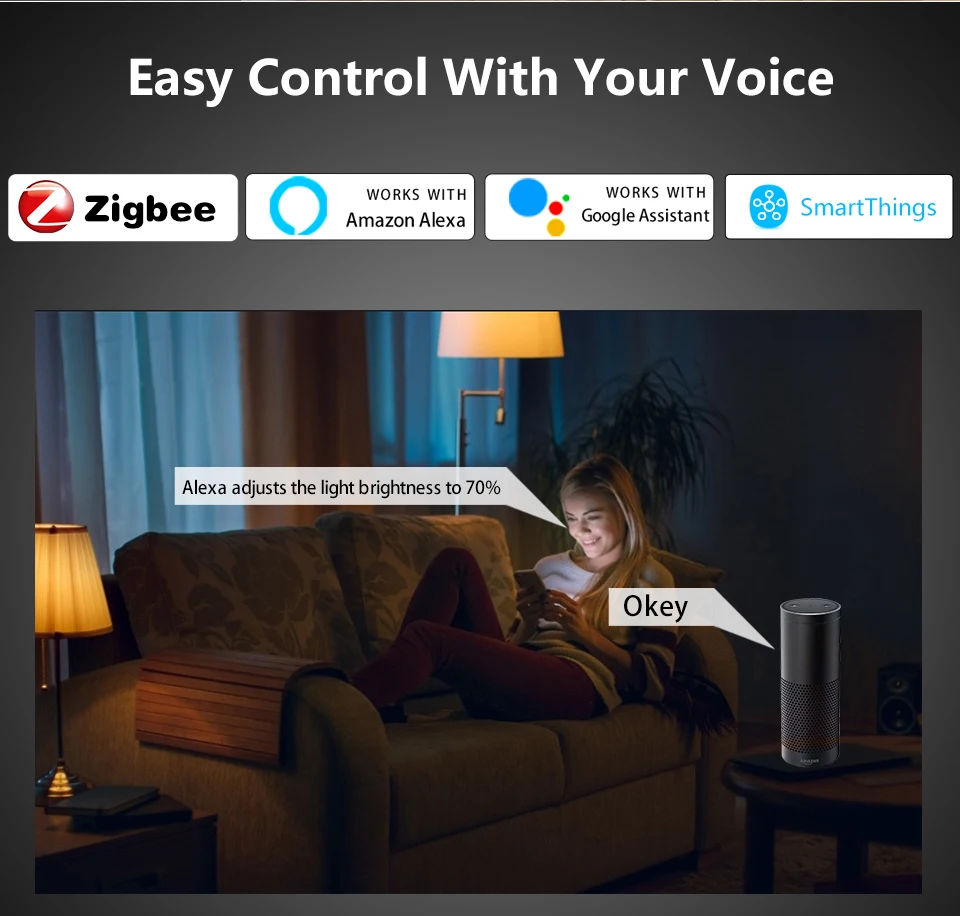 Особенности:1. Совместимость с голосовым управлением: умная лампа работает с Alexa Echo, Google Home Assistant, вы можете управлять умной лампой через свой голос, И просто нужно дать голосовую команду, чтобы включить/выключить или затемнить/осветить ваш светильник (Е. g. "Alexa, установите спальню на синий").2. Дистанционное управление с помощью приложения: включение/выключение Alexa, google home включило умную лампочку, независимо от того, находитесь ли вы дома или далеко, вам просто нужно загрузить приложение «smart life». Вы можете создать группу для всех ваших умных ламп и управлять ими с помощью только одной команды.3. RGBCW и многоцветная умная лампа: RGB холодный белый и теплый белый смарт-лампа создает ваши любимые эффекты светильник с 16 миллионов цветов и яркость каждого цвета затемнения.4. Широкое применение и сцена системы: вы можете установить различные режимы светильник на умной жизни, чтобы соответствовать различным случаям, включая кухню, гостиную, спальню. Также можно использовать для настольной лампы, кафе, бара, вечерние и т. д. и имеют эту функцию с цветовой палитрой, групповым контролем, солнечным светом, таймером, восходом, закатом, регулируемой яркостью, функцией микрофона, режим DIY, режим сцены.Спецификация:Тип: смарт-светодиодный светильник Zigbee 3,0Материал: авиационный алюминий, пластикТип гнезда: E27Мощность: 12 Вт 15 Вт 18 ВтНапряжение: 85-265 В переменного токаСрок службы: >50000 чЗагрузка приложения: Smart LifeСтандарт беспроводной связи: Zigbee 3,0Светильник цвет: RGB + теплый белый + белый (2700K-6500K)Функция: Голосовое управление, пульт дистанционного управления с регулируемой яркостьюПоддержка Philps Hue/Tuya/Smartthings/Echo(4 th)/Echo Plus/Echo Show(2)/Echo studio/ZHA и любого стандартного шлюза Zigbee 3,0.