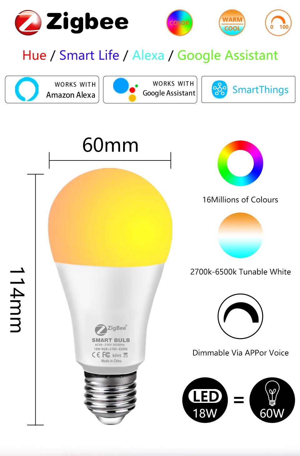 Страна: BR Emitting Color: Smart Zigbee Bulb Ships From: China Wattage: 18w Доставка: Saver Shipping 17.01.2022