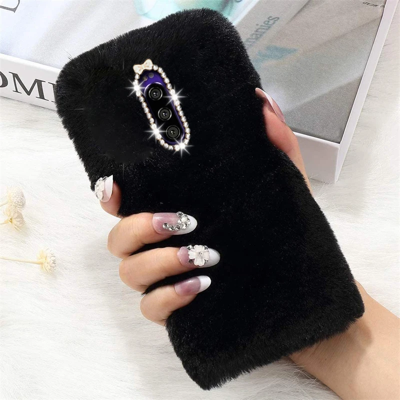 3D чехол с алмазными кроличьими ушками, плюшевый чехол для Sony Xperia 10 5 1 I II III L4 L3 L2 L1 XZ3 XZ2 XZ1 Compact XA2 XA1 Ultra Plus, теплый чехол