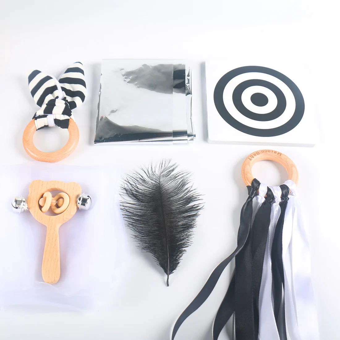 Игрушки Монтессори сенсорные, черные и белые флэш-карты, деревянная Подарочная коробка-погремушка, подарок новорожденному ребенку 0-3 месяцев, обучающая игрушка, игрушки C0864H