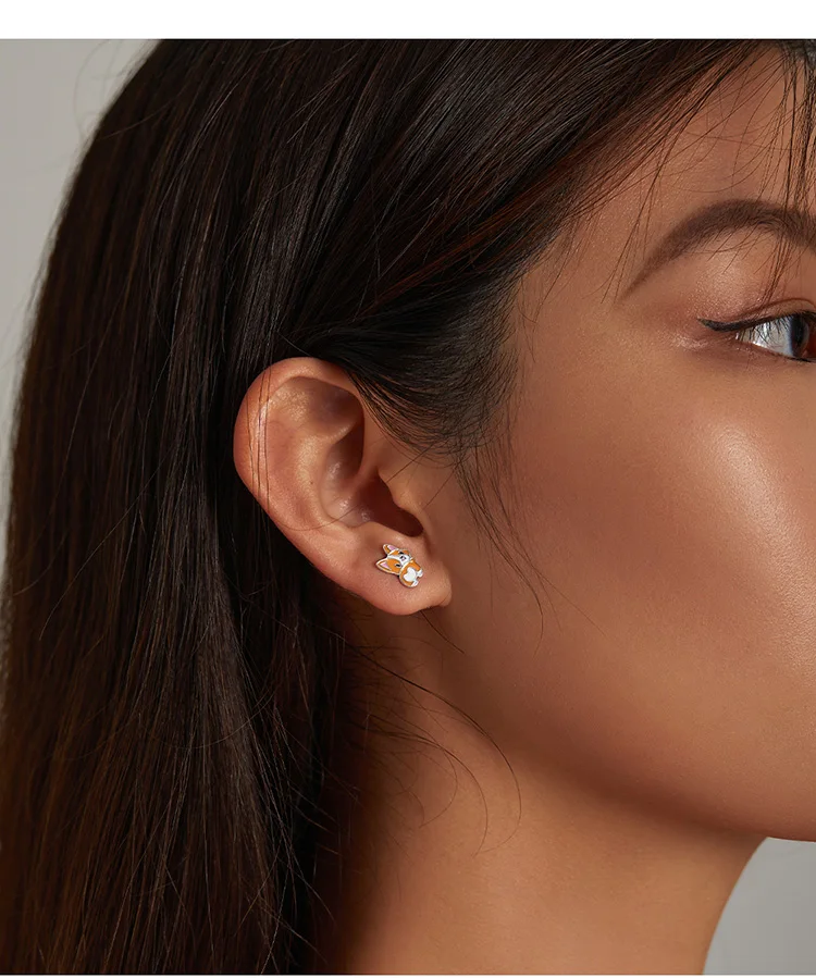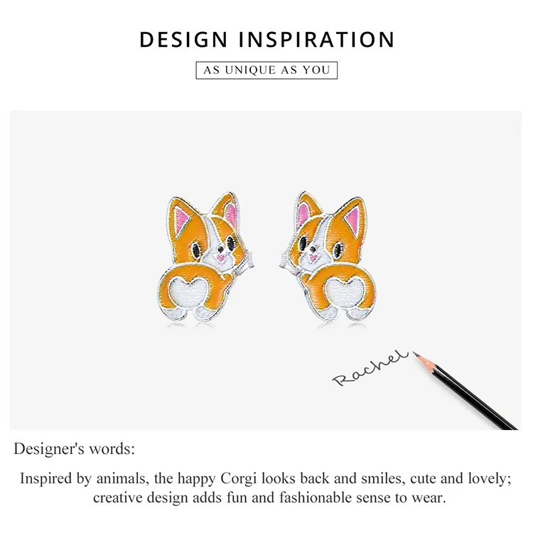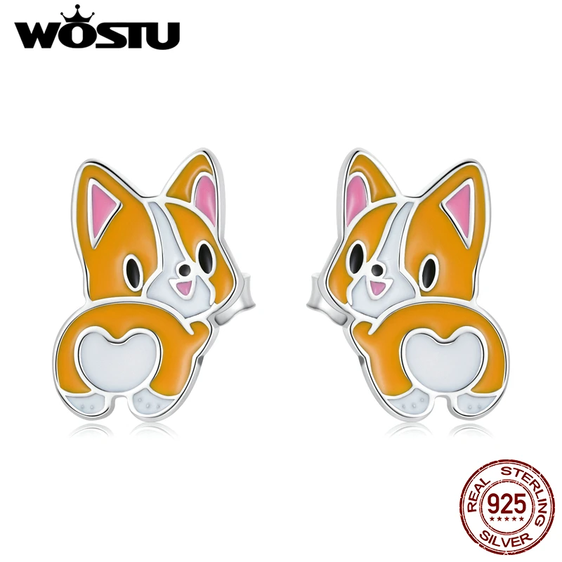 Женские серьги-гвоздики в вечерние корги, из серебра 2021 пробы