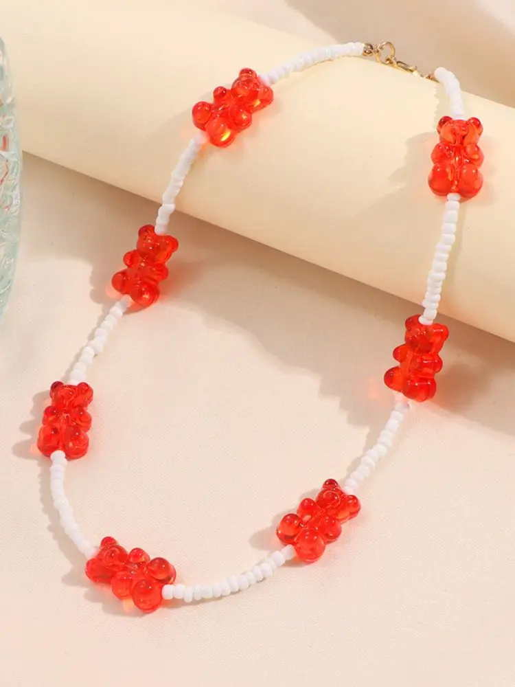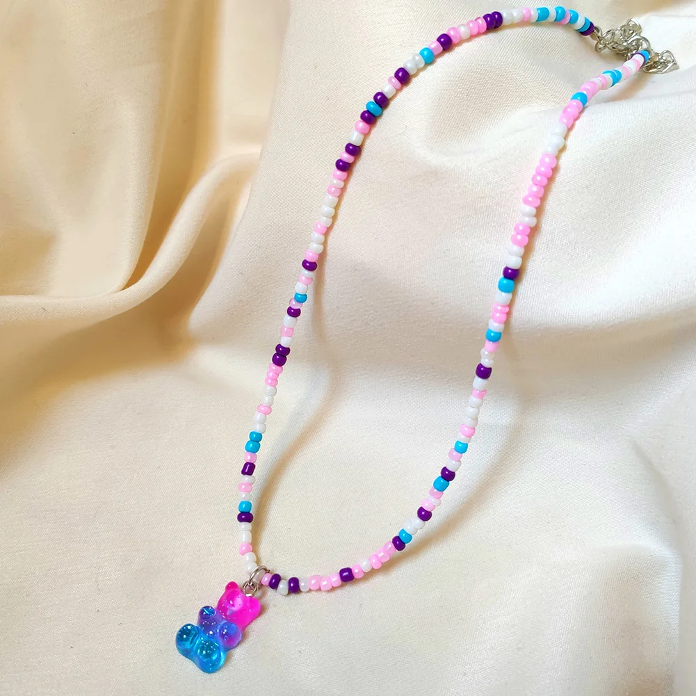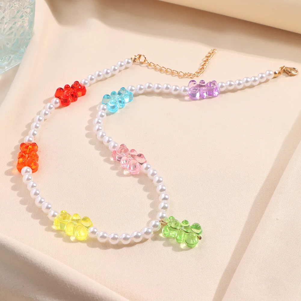 Радужные цветные бусины, жевательные смолы, ожерелья медведь, для ж...