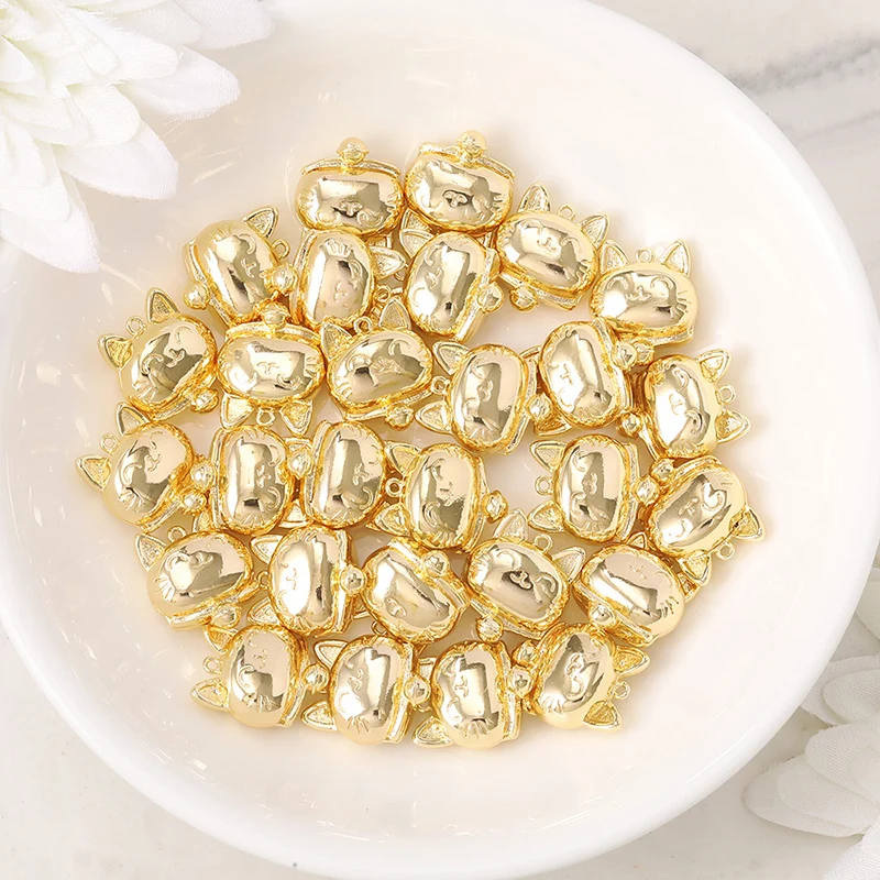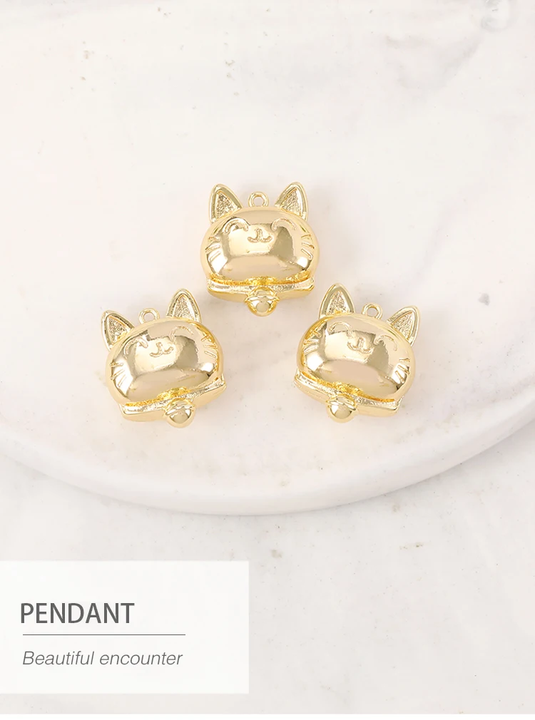 Оптовая продажа с фабрики, позолоченные латунные подвески в форме кота, ожерелье и браслет, серьги, ювелирные изделия сделай сам