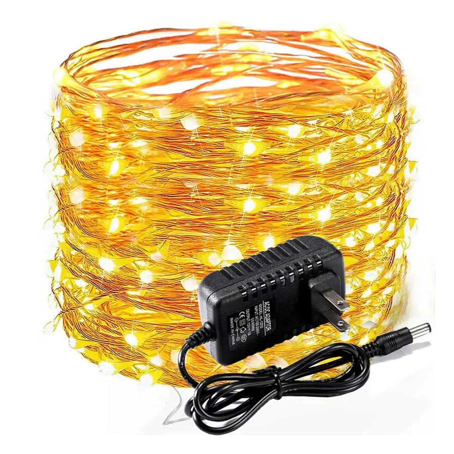 Рождественская сказочная лампа s, 20 м, 50 м, 100 м, светящаяся гирлянсветильник с медным проводом и адаптером для украшения улицы, свадьбы, спальни, патио