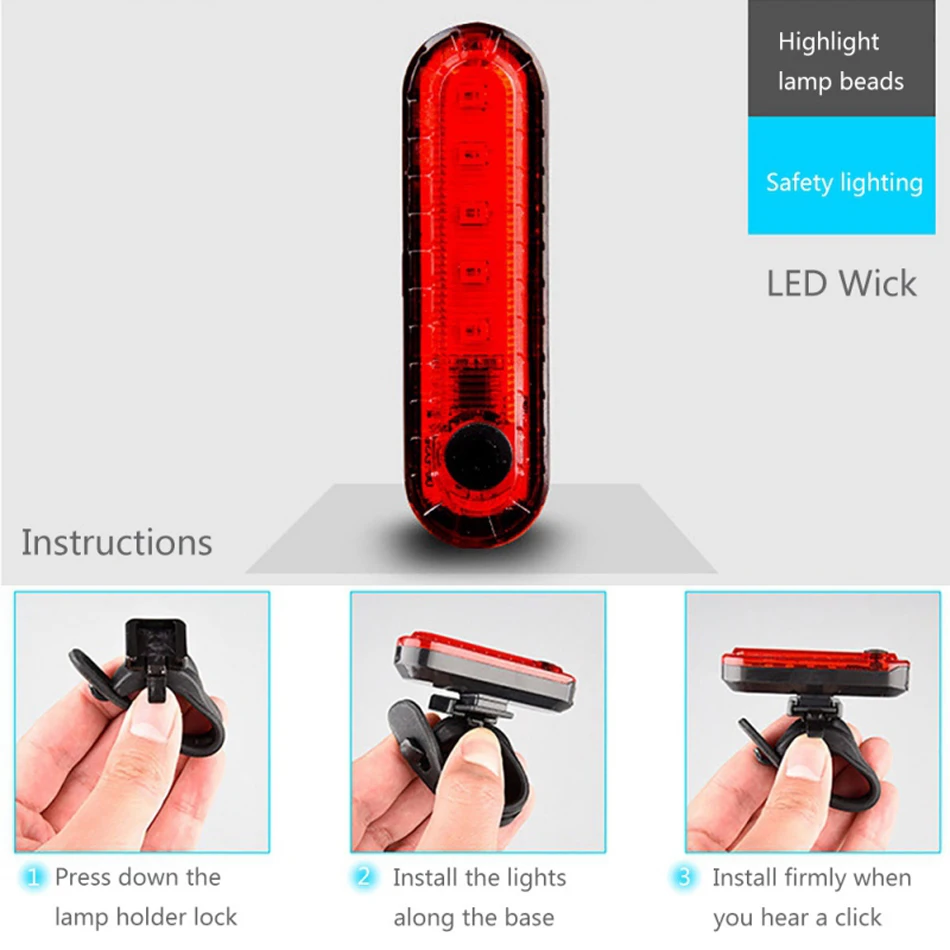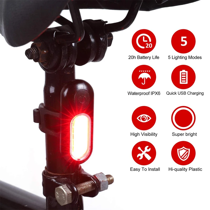 Feature 14Waterproof Bike Taillight LED USB Rechargable Safety Back Light