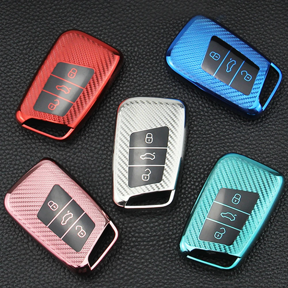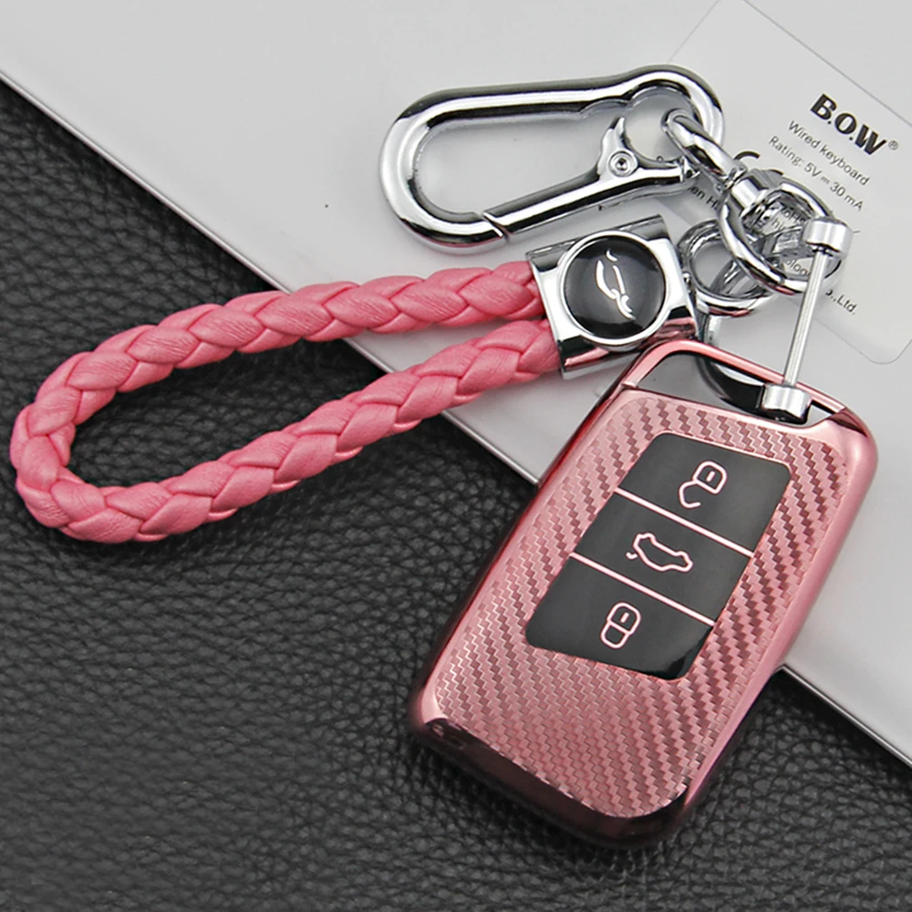 Чехол для автомобильных ключей, ТПУ, с кольцом-цепочкой для ключей для Volkswagen VW Tiguan MK2 Magotan Passat B8 CC, Skoda Superb A7