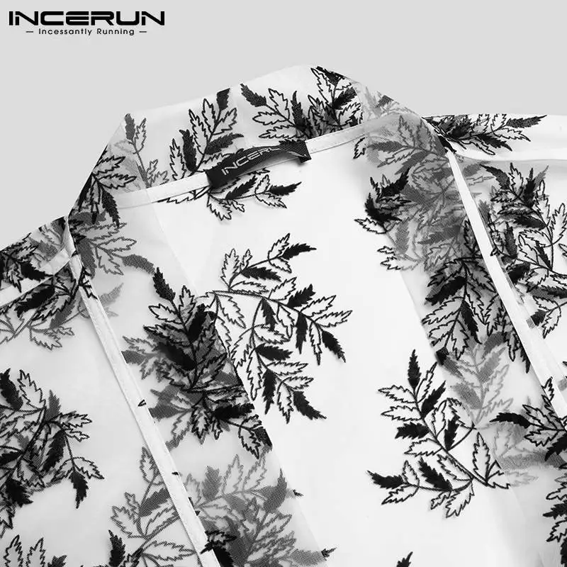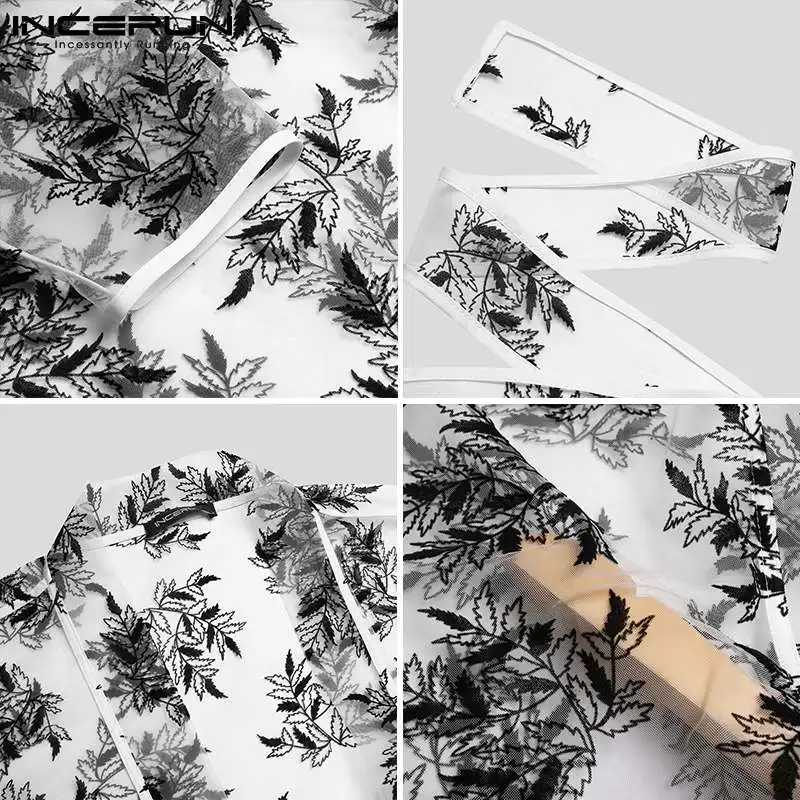 Рубашка INCERUN Мужская сетчатая Прозрачная с принтом, пикантный топ с открытым стежком и длинным рукавом, с поясом, уличная одежда, повседневная домашняя одежда, 2022