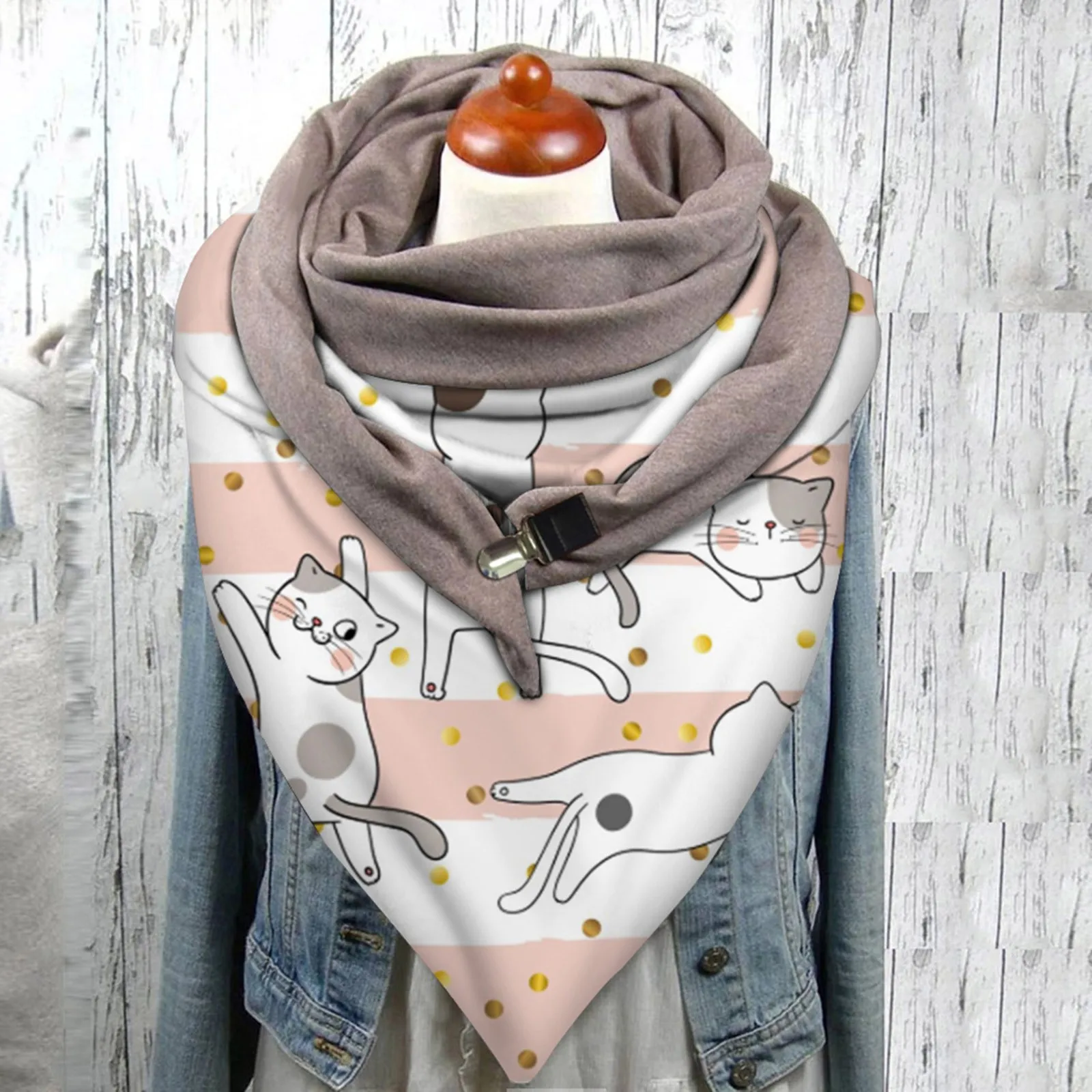 Зимний мягкий шейный платок в виде кошки с планкой Женский Повседневный теплый Шарф на пуговицах шали для отдыха двухслойный тюрбан d4