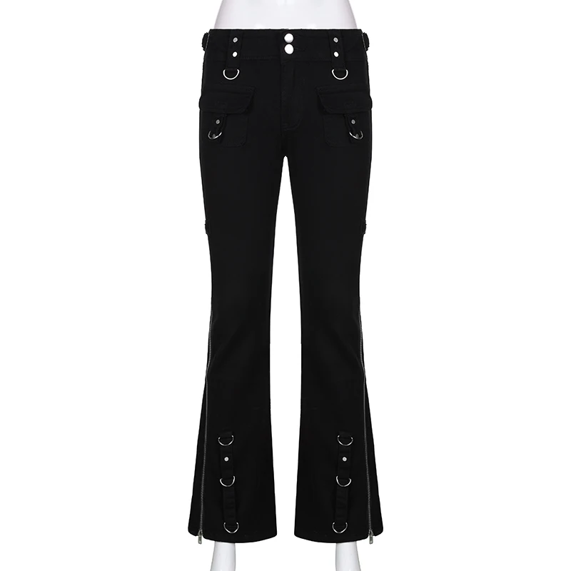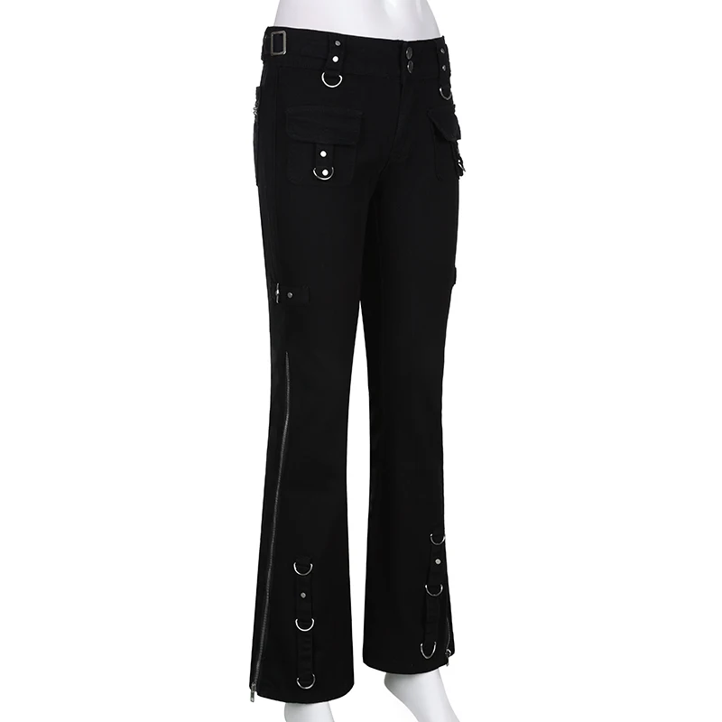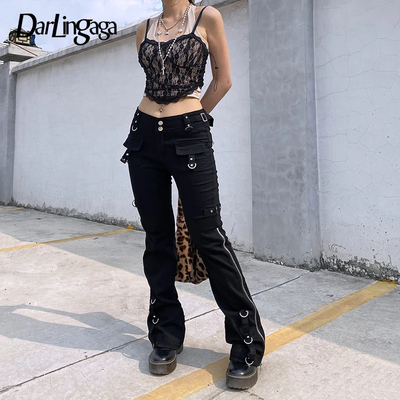 Джинсы женские джинсовые с низкой посадкой, на молнии, в стиле панк