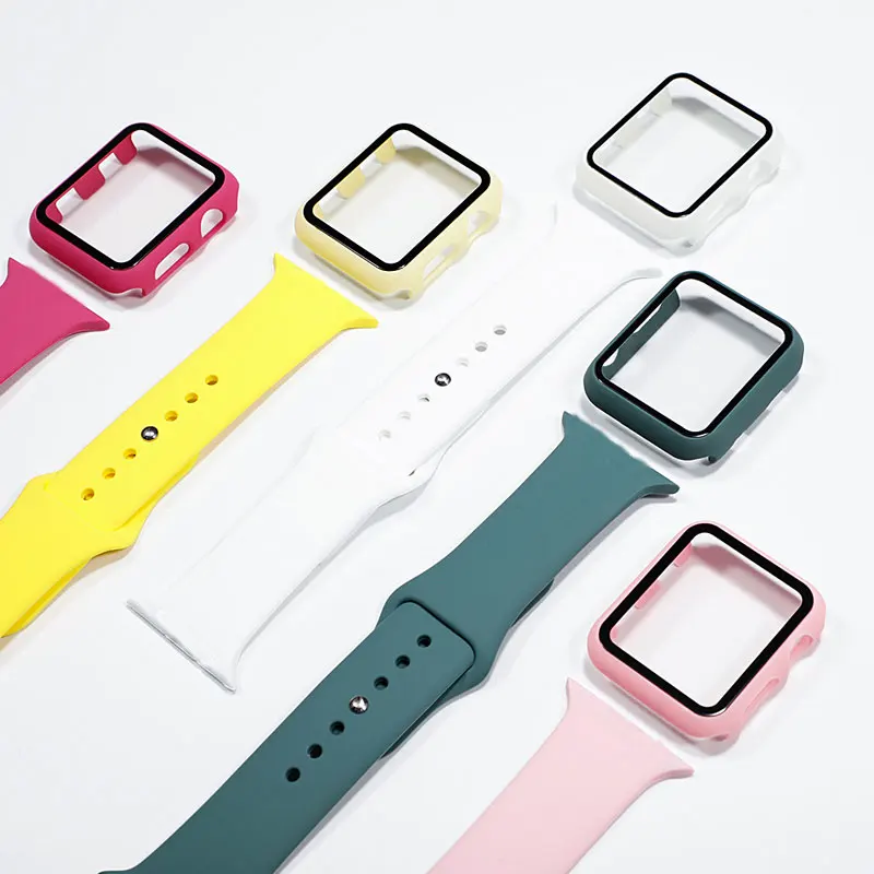 Стекло + чехол + ремешок для Apple Watch 44 мм 40 мм 38 мм 42 мм 44 мм силиконовый ремешок для умных часов iWatch 3 4 5 6 se ремешок