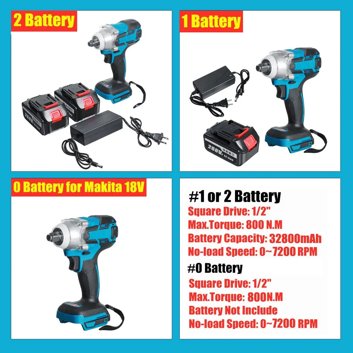 Новинка 32800 мАч 288VF бесщеточный Электрический ударный гайковерт 12 литий-ионный аккумулятор 7200 обмин 800 Н-М крутящий момент для батареи Makita