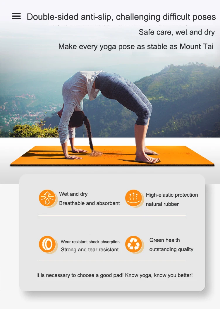 Экологичный нескользящий коврик для йоги из натурального каучука, 5 мм, двухслойный, для начинающих, экологичный, для фитнеса, гимнастики, большой коврик для йоги