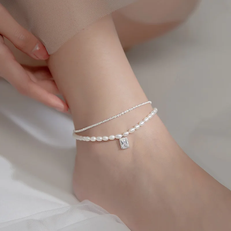 Женский браслет на ногу Enosola, из серебра 925 пробы, с пресноводным жемчугом