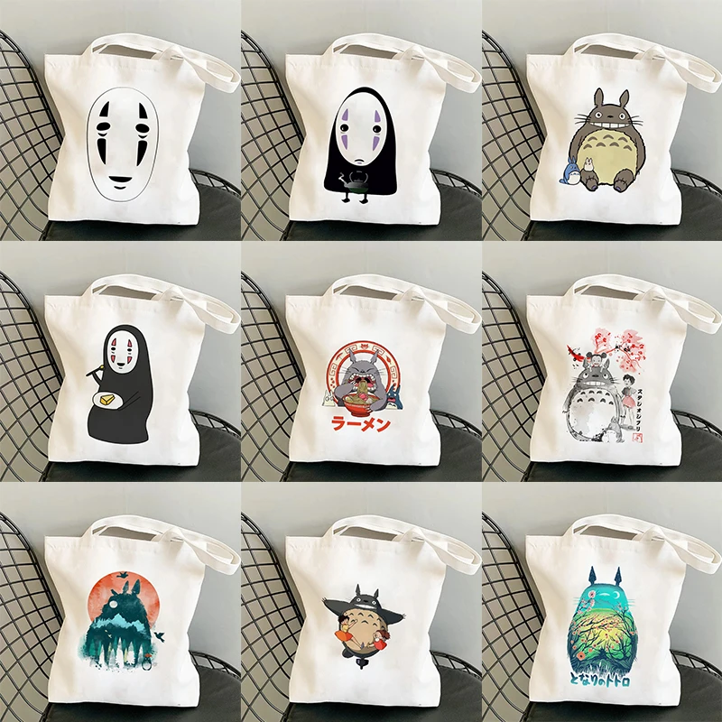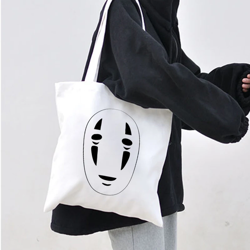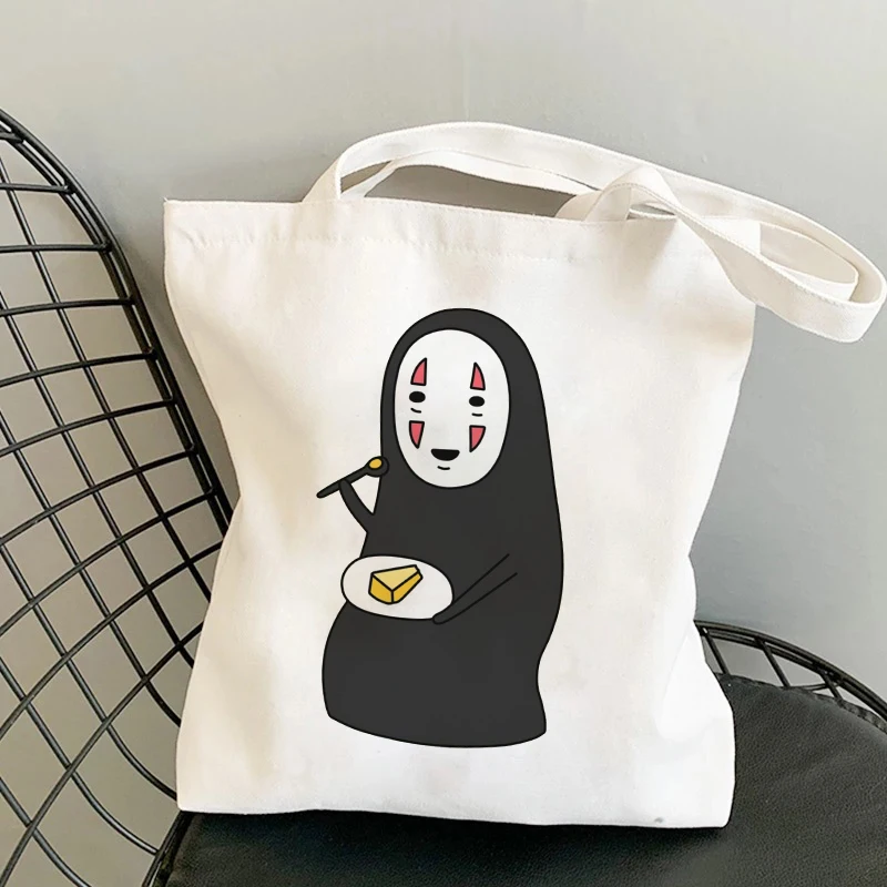 Хлопковая Сумка-тоут для шоппинга No Face для мужчин, эко-многоразовая эко-сумка для шоппинга в стиле аниме, из денима