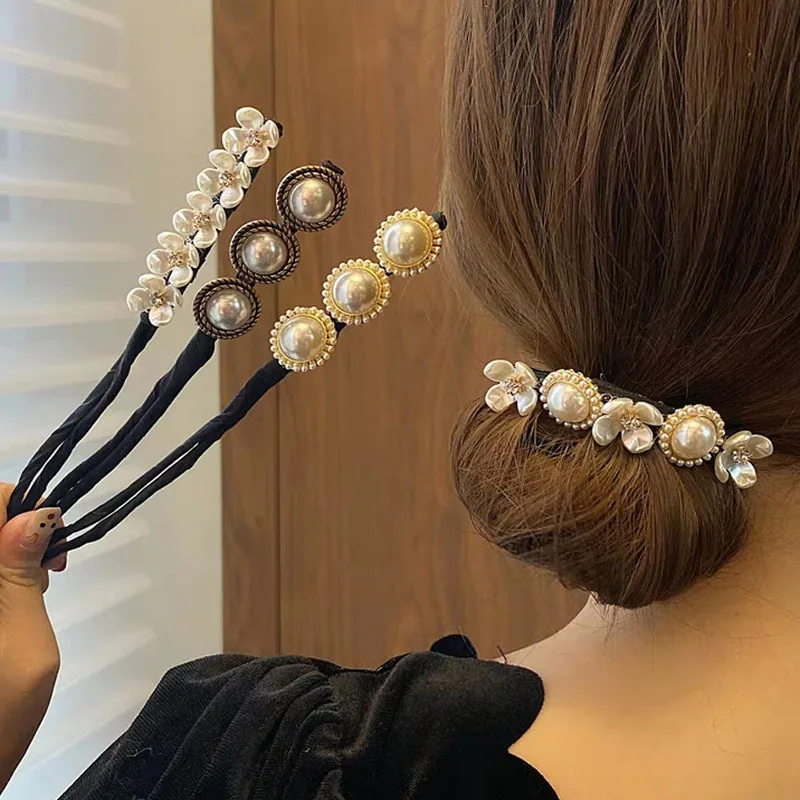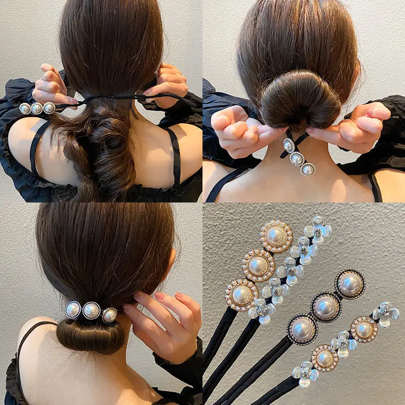 Новые жемчужные Волшебные булочки для волос, обручи для волос с жемчужинами и цветами, модные обручи для волос, сделай сам, аксессуары для волос