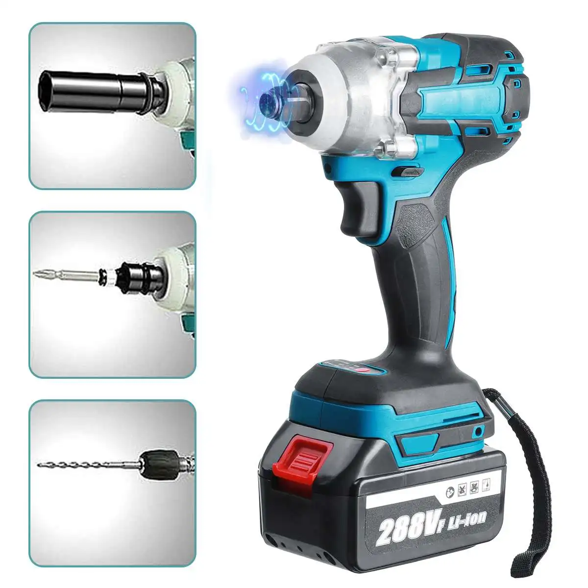 Электрический ударный гайковерт 288VF, бесщеточный гайковерт 800 нм, 7200 обмин, 12 аккумулятора, литий-ионный аккумулятор, дрель для установки, электроинструменты 110-240 В