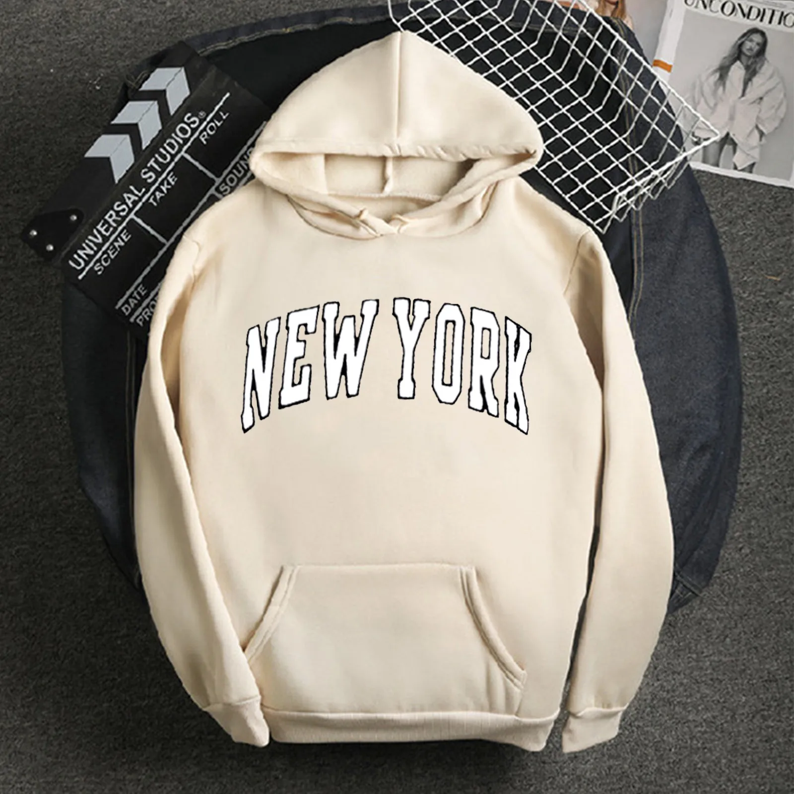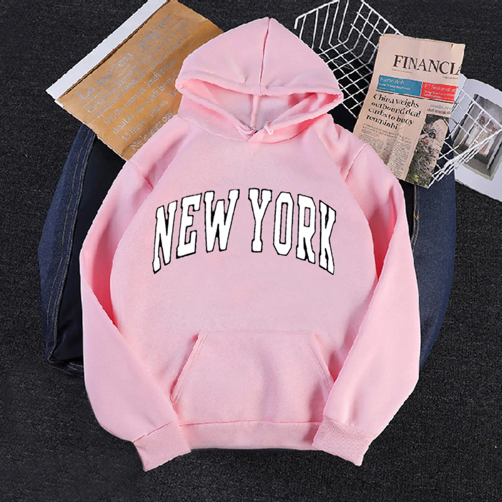 Женская толстовка с капюшоном, с надписью New York, свободная, с длинным рукавом, в Корейском стиле