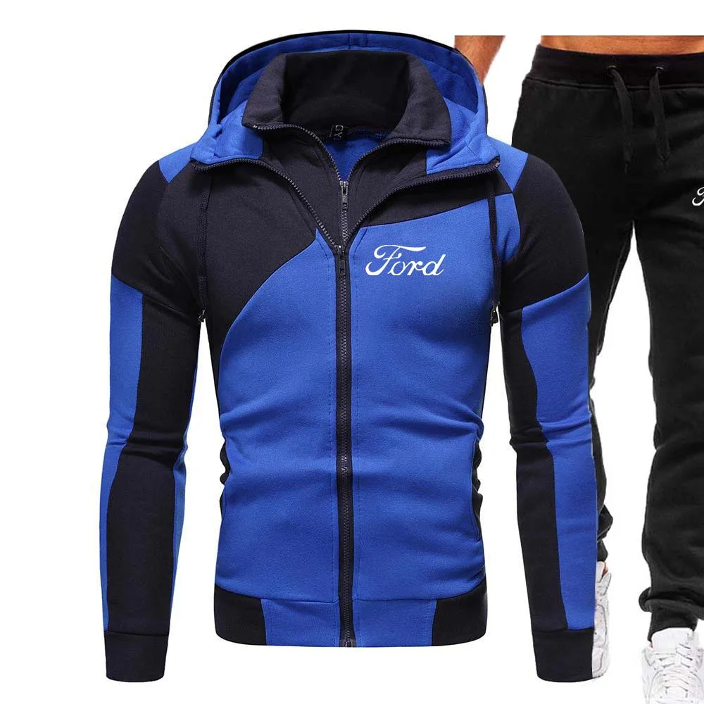 Мужской спортивный костюм, хлопковая толстовка с капюшоном и штаны, с градиентным принтом и логотипом Ford, 2020