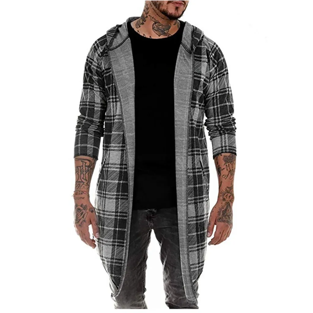 Мужской однотонный Тренч с капюшоном, Кардиган с длинным рукавом, повседневная простая верхняя одежда, 2021