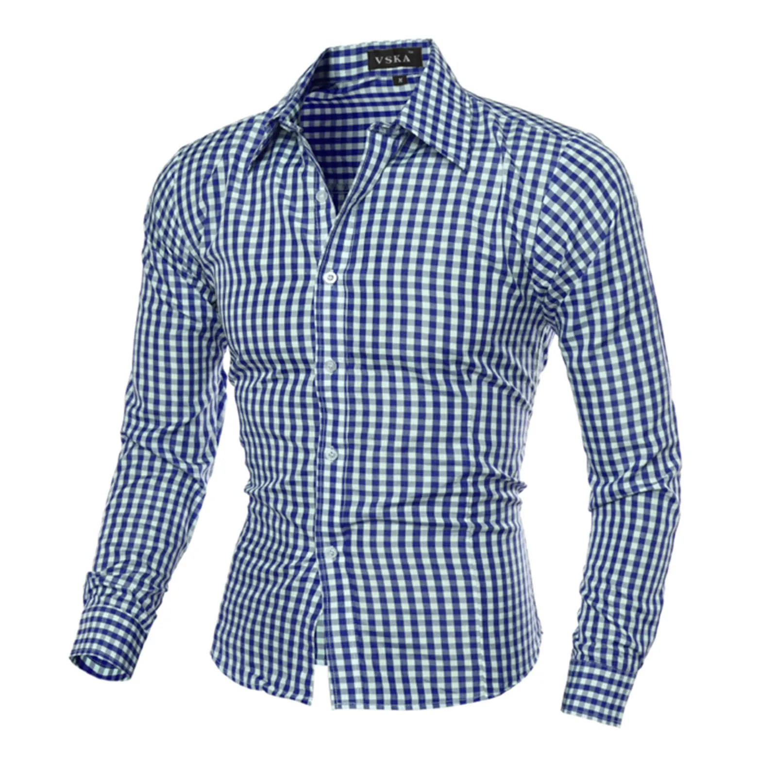Рубашка мужская в клетку, с длинным рукавом и отложным воротником