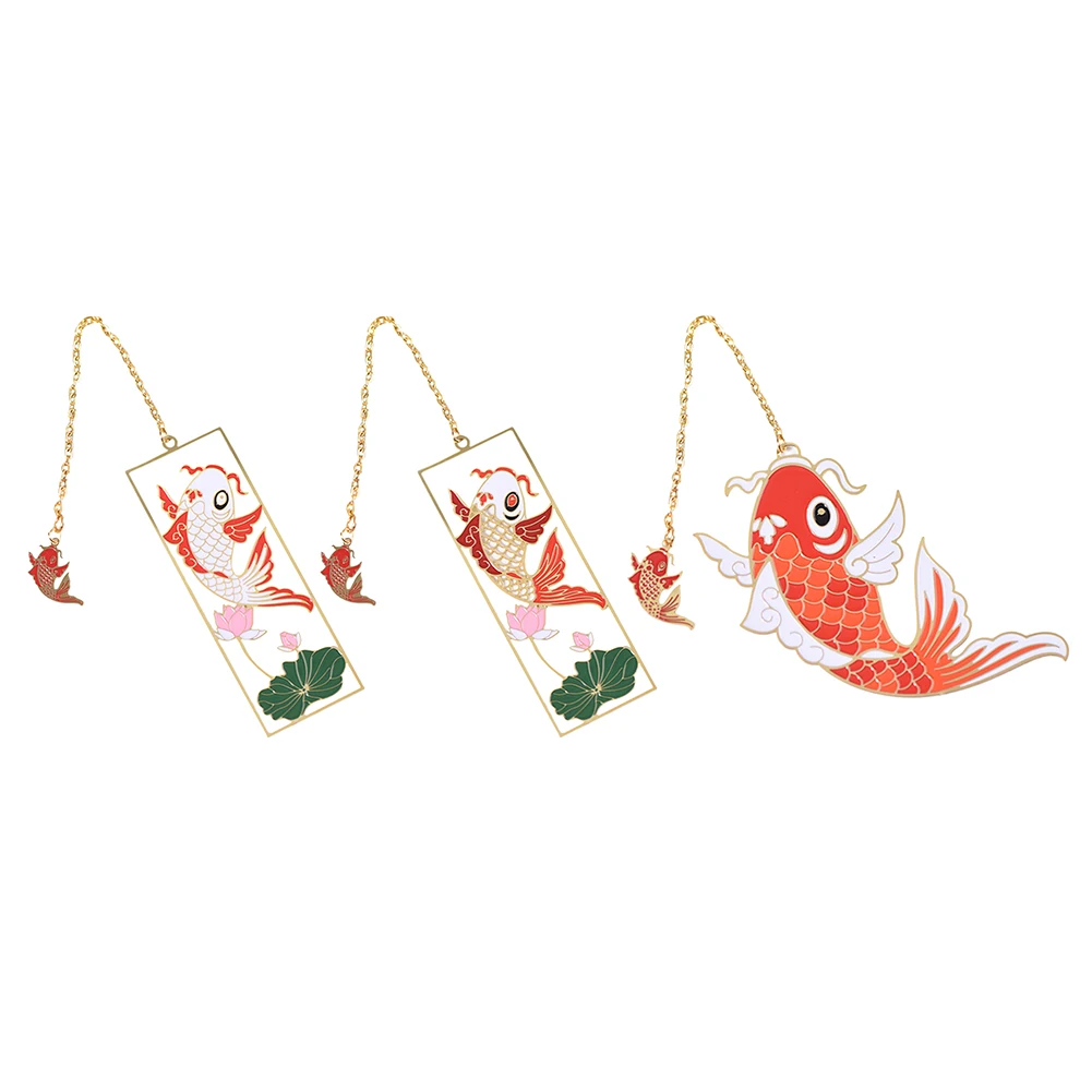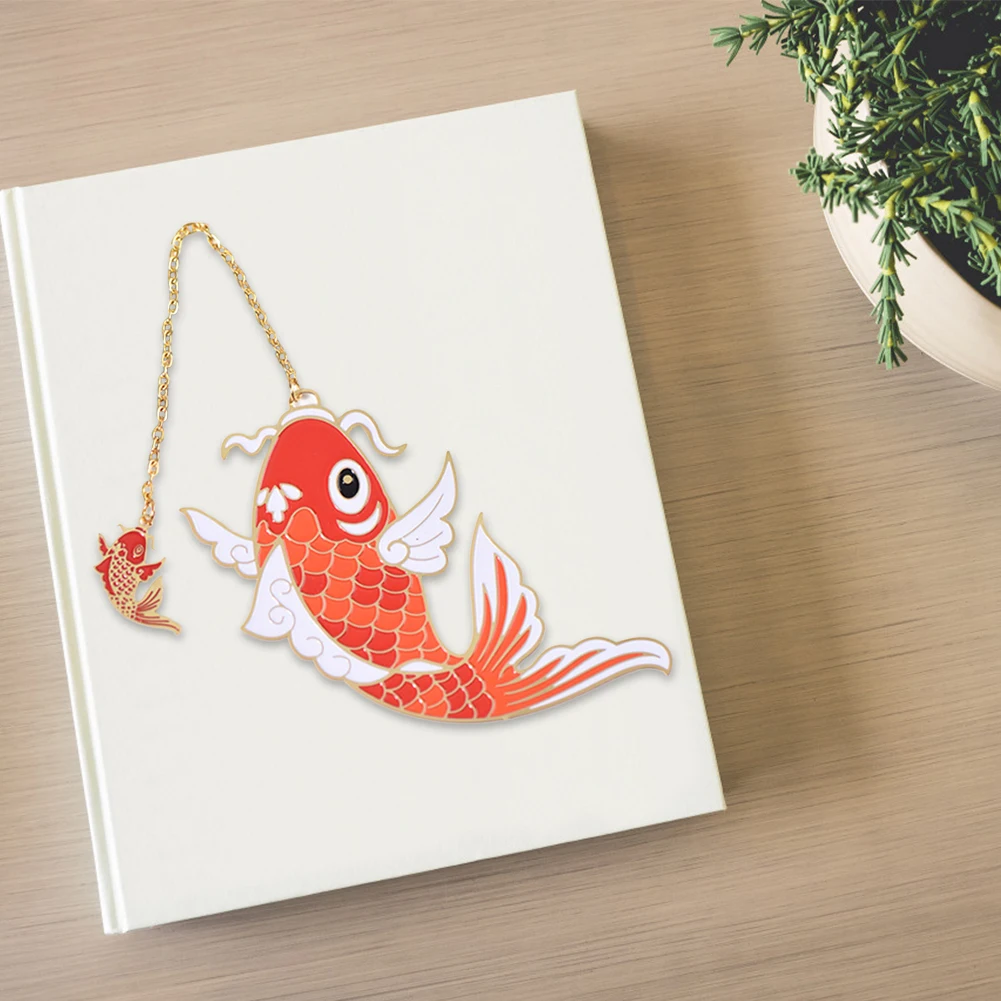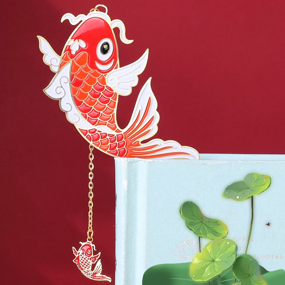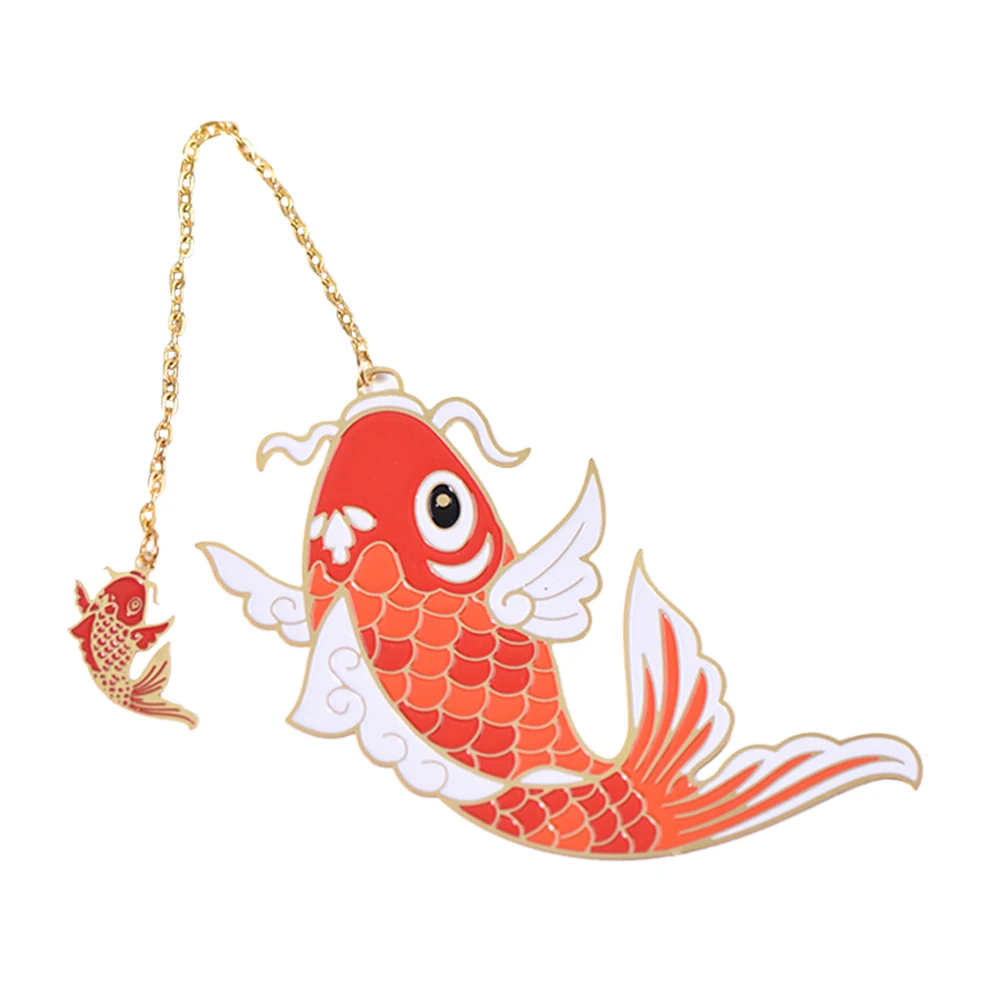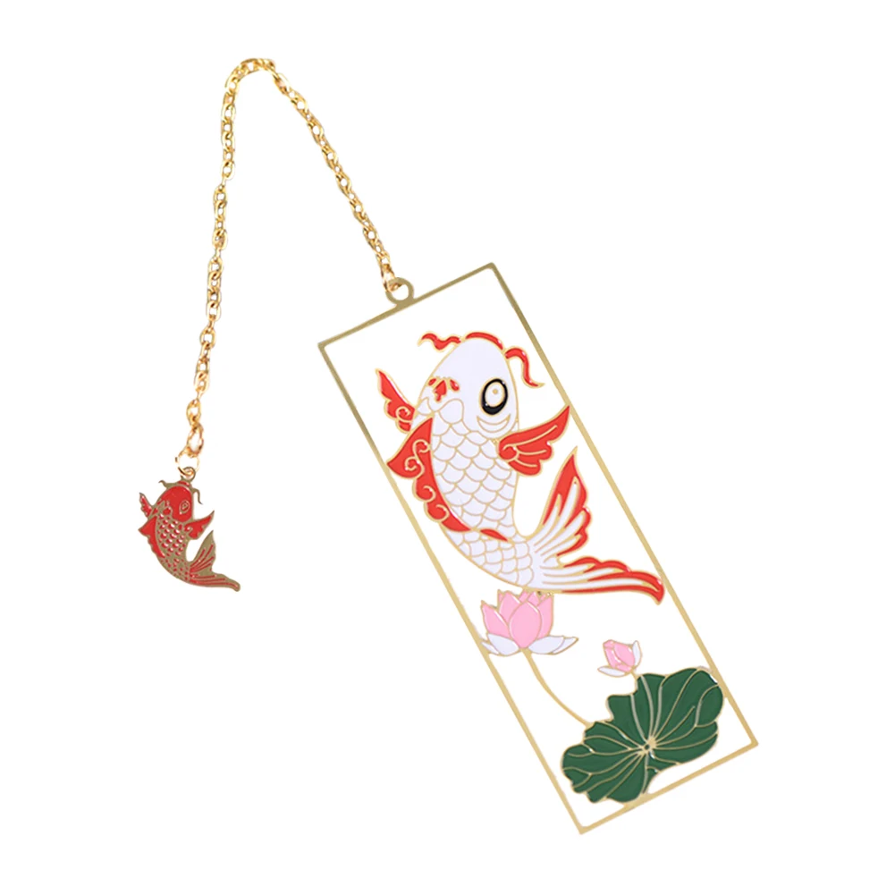 Металлическая Закладка Koi Fish в латунном китайском стиле, необычный маркер, изысканный сувенир, подарок для студентов, канцелярские товары