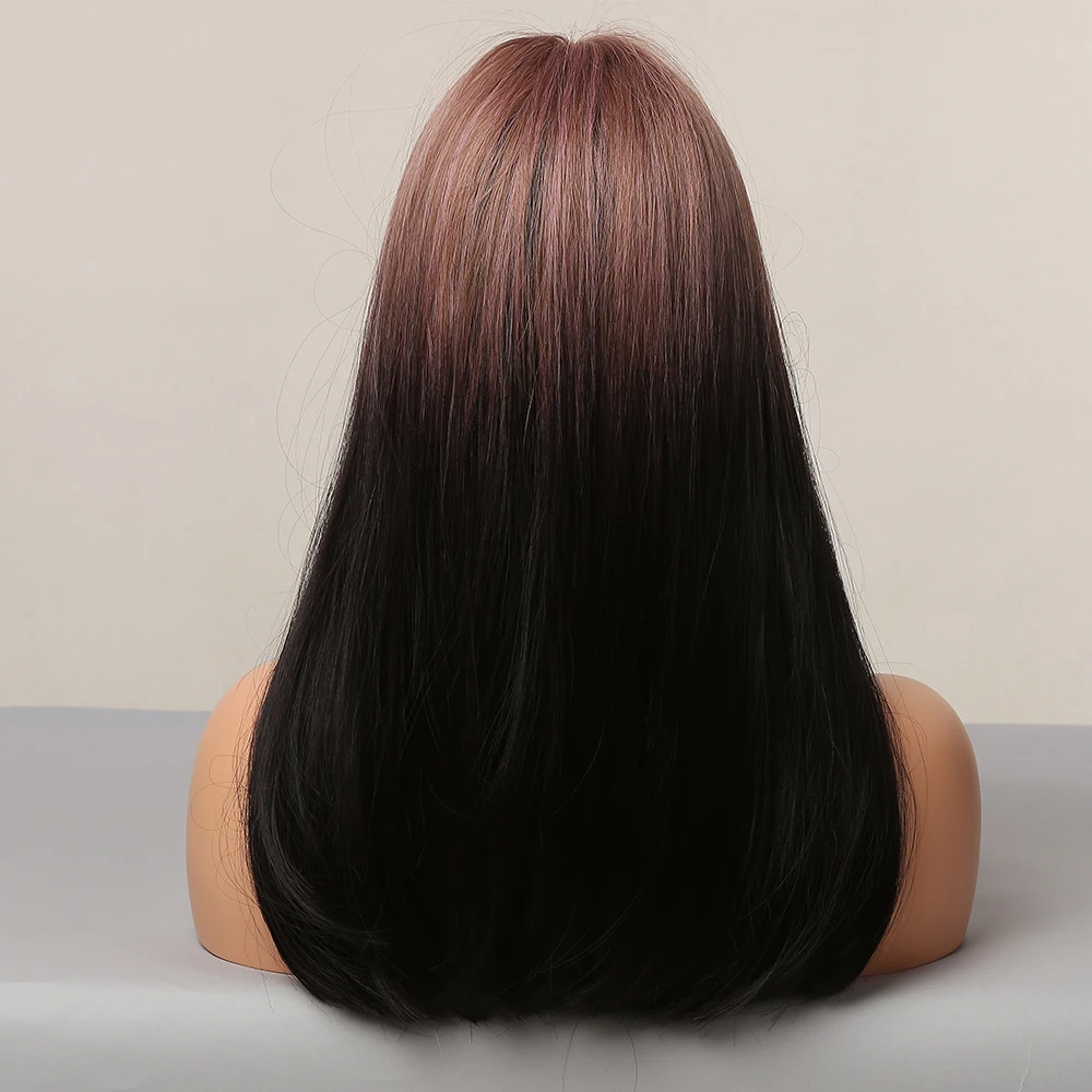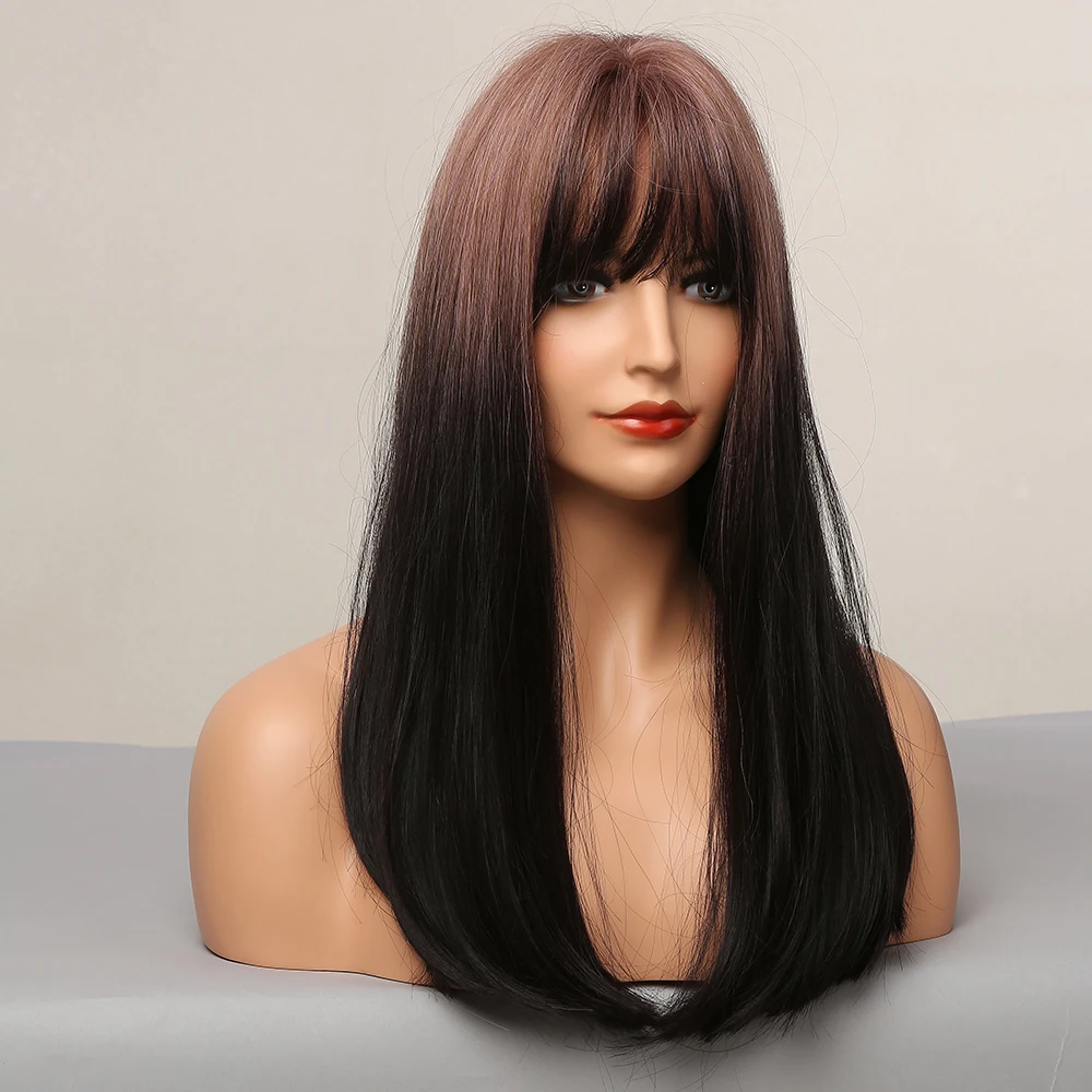 EASIHAIR длинный Омбре коричневый черный синтетический парик для женщин с челкой повседневные шелковистые прямые Косплей парики термостойкие