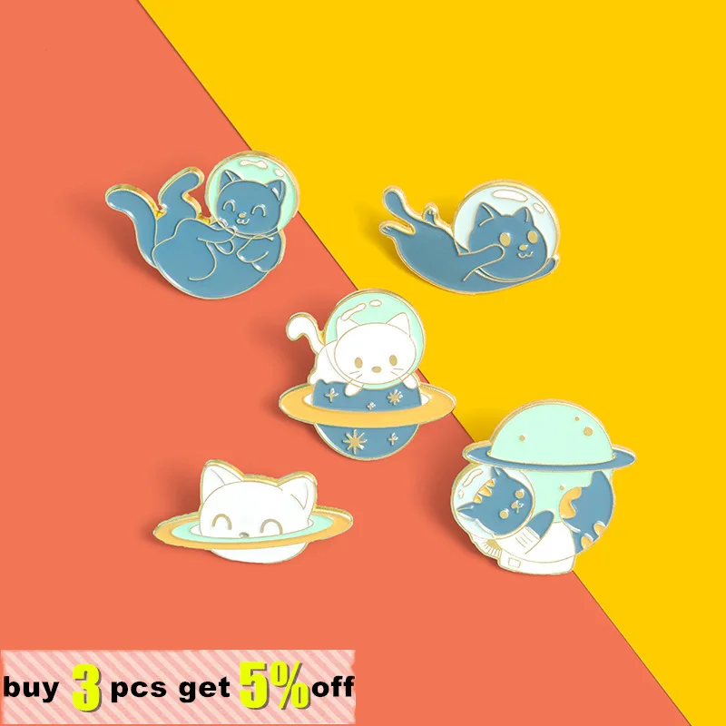 Эмалированные булавки в виде астронавта, кошки, космоса, Вселенной, Мультяшные животные, броши, рюкзаки, булавка на лацкан, милый металлический значок, ювелирные изделия, подарки для друзей