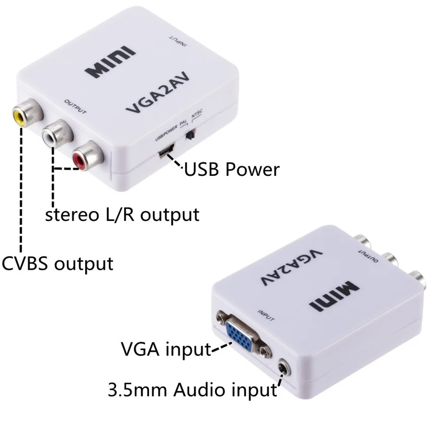 Примечание: Этот преобразователь не двунаправленный. Он преобразует только VGA в AV/RCA.