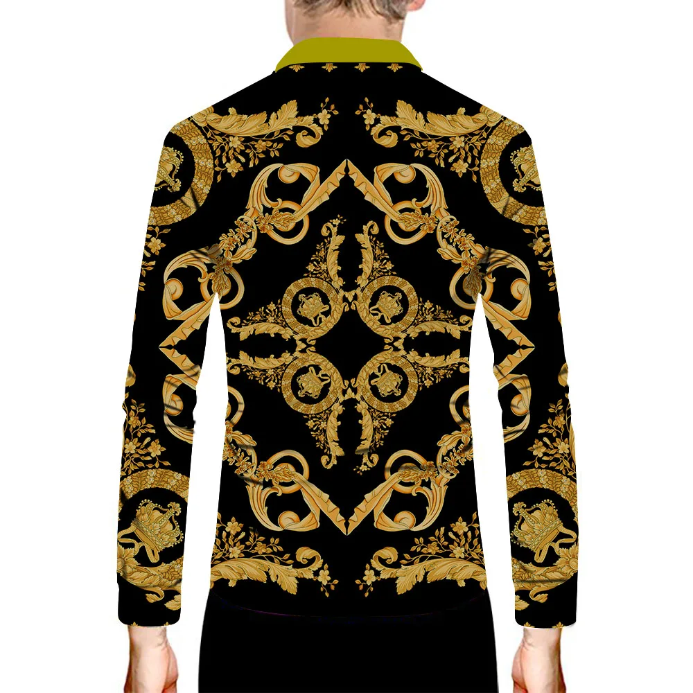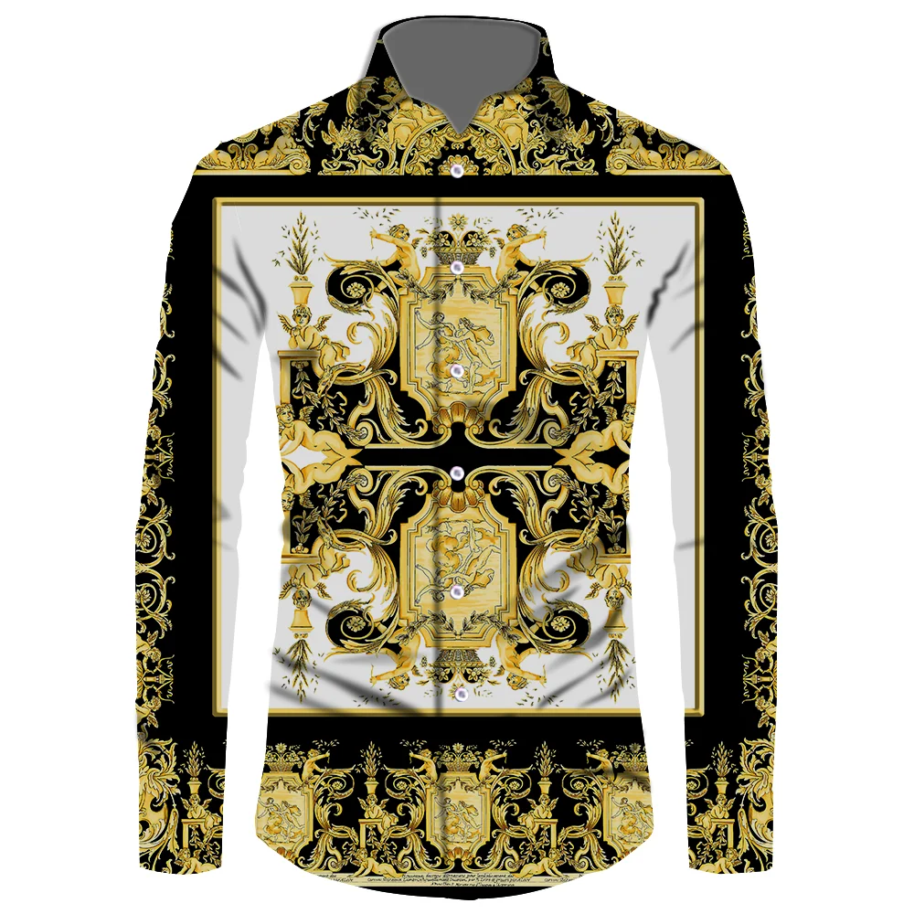 Рубашка мужская с длинным рукавом, топ в стиле барокко, цвет черный...