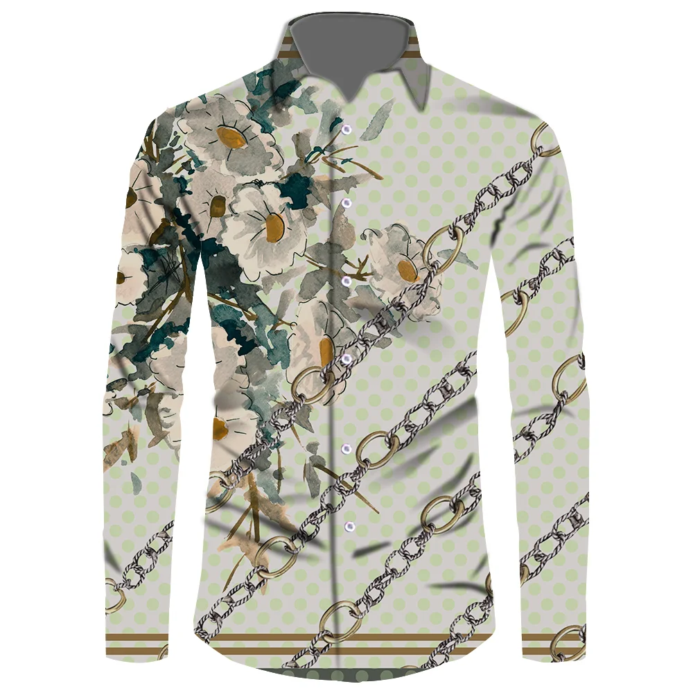 Мужская Повседневная рубашка, красная рубашка в стиле барокко, с длинным рукавом и принтом, лето 2021