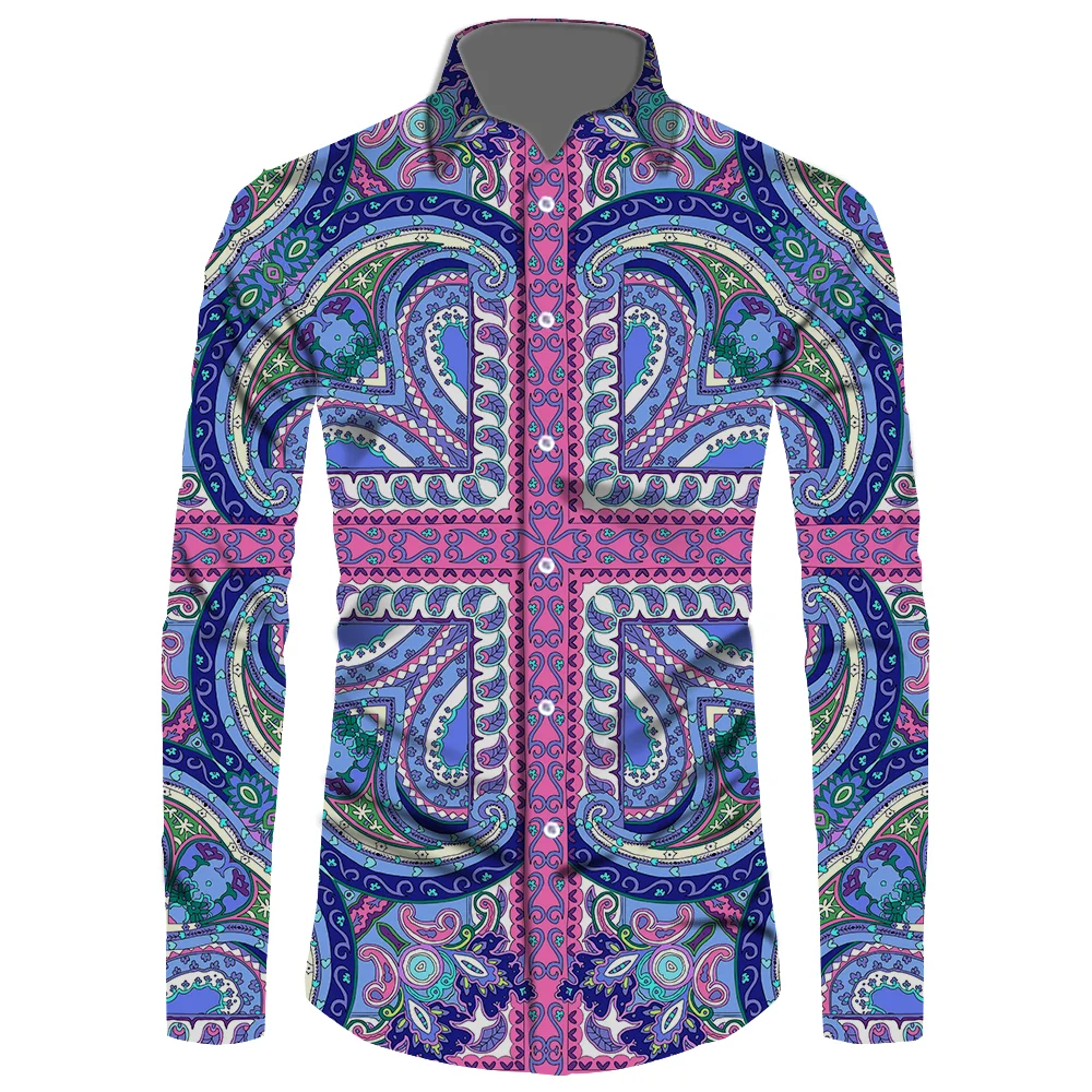 Рубашка мужская оверсайз с длинным рукавом, повседневная Бандана с ...