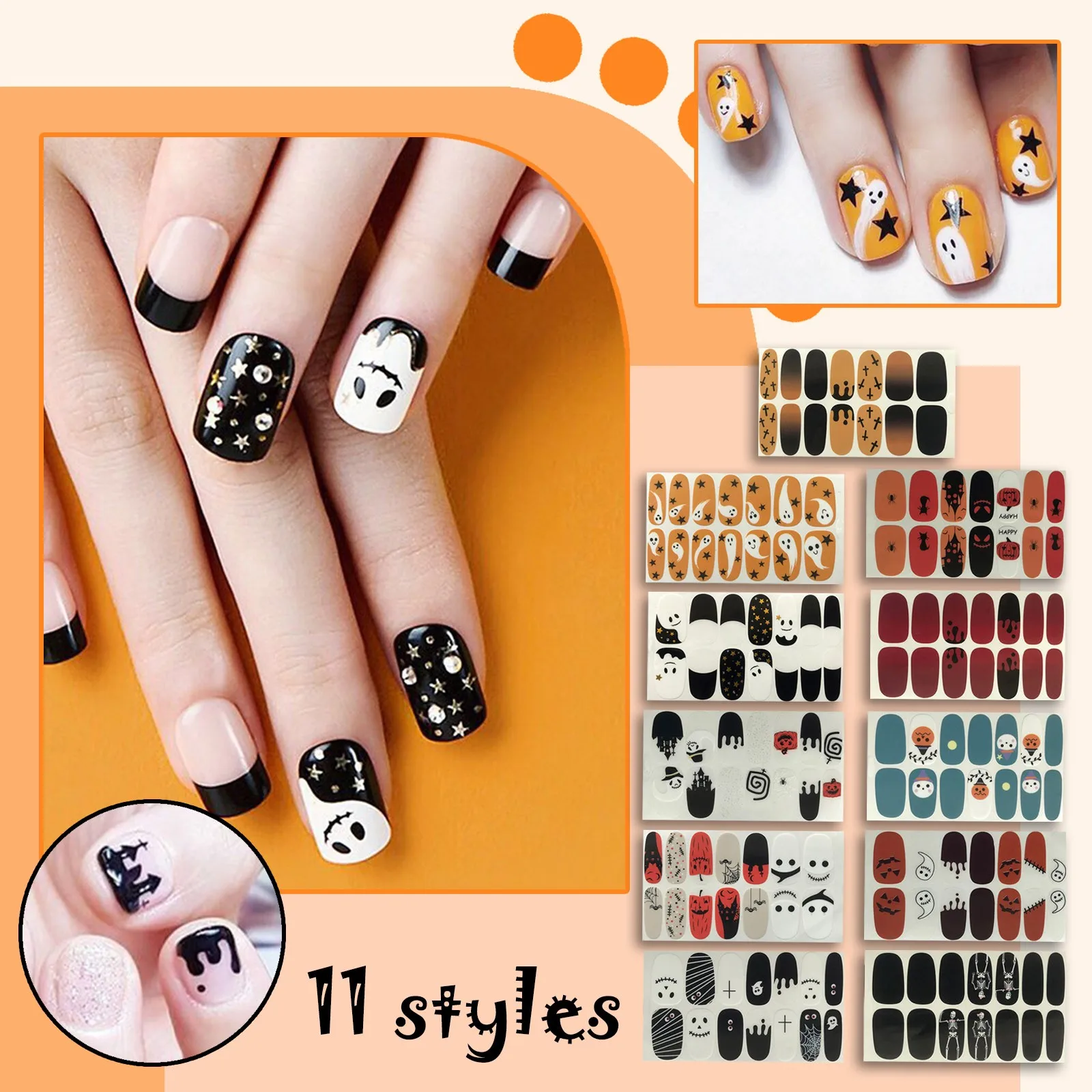 Наклейки для дизайна ногтей, 14 наконечниковлист, РождествоХэллоуин