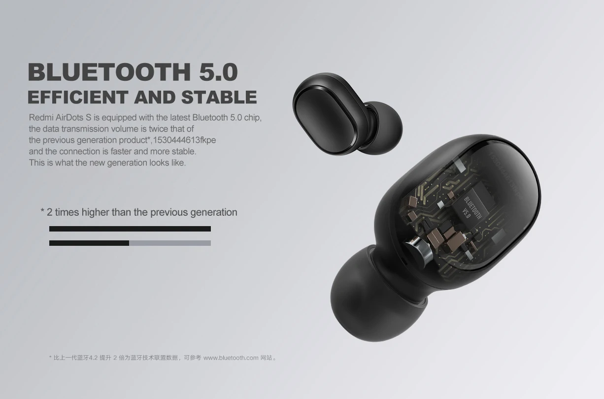 Redmi Airdots 2 оснащен новейшим чипом bluetooth 5,0, данные в 2 раза превышают скорость передачи данных предыдущего поколения