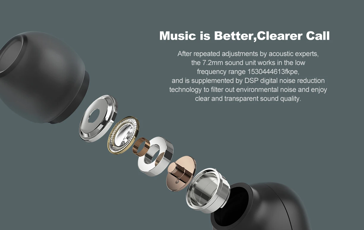 Оснащен 7,2 мм звук-генераторный агрегат, мощный низкочастотный погружение, тонкие и мягкие середины высокой частоты. Интеллектуальная технология снижения уровня шума для окружающей среды DSP, она может удалять технологию снижения уровня шума окружающей среды, она может удалять шум окружающей среды, другие вечерние четко слышат ваш голос.