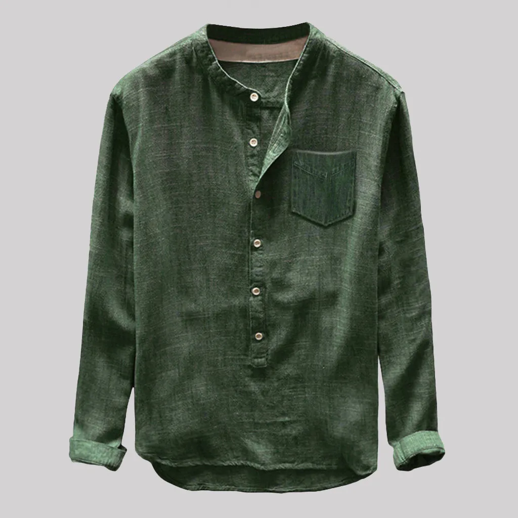 Рубашка мужская с длинным рукавом, модная блузка на пуговицах, лен и хлопок, Повседневная Удобная блузка, на осеньзиму