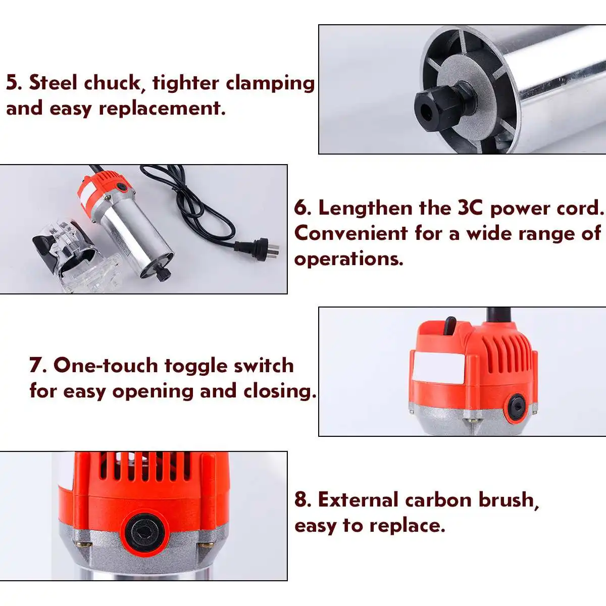220 В Комплект ЕС/США посылка включает в себя:-1x2300 Вт 45000 об/мин Деревянный электрический маршрутизатор (ЕС/USPlug опционально)-2 Ключи-1 x Руководство по сборке триммеров-1 x прямая направляющая сборкаФлуоресцентныйВ комплект входит 15 шт.; Посылка:-1x2300 Вт 45000 об/мин Деревянный электрический маршрутизатор (штепсельная Вилка EU/US опционально)