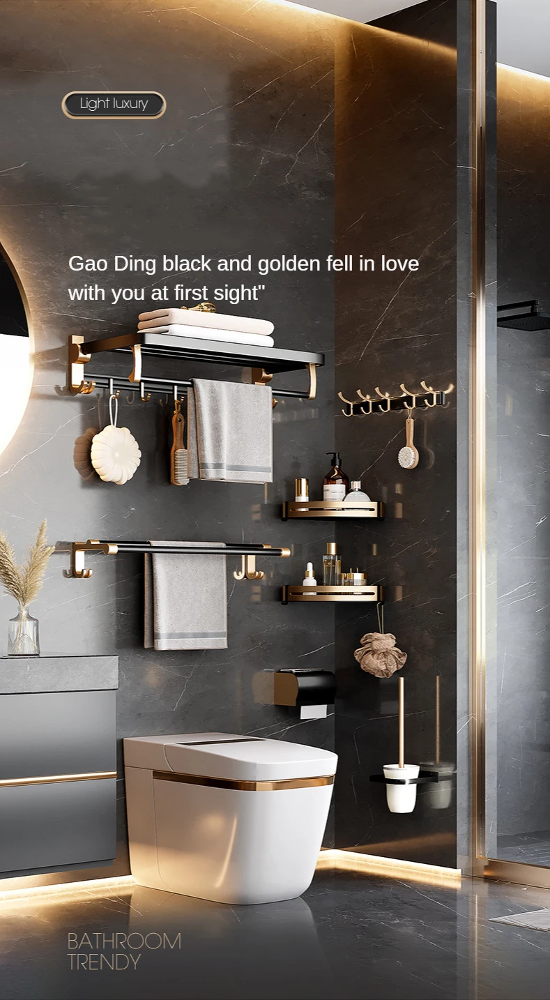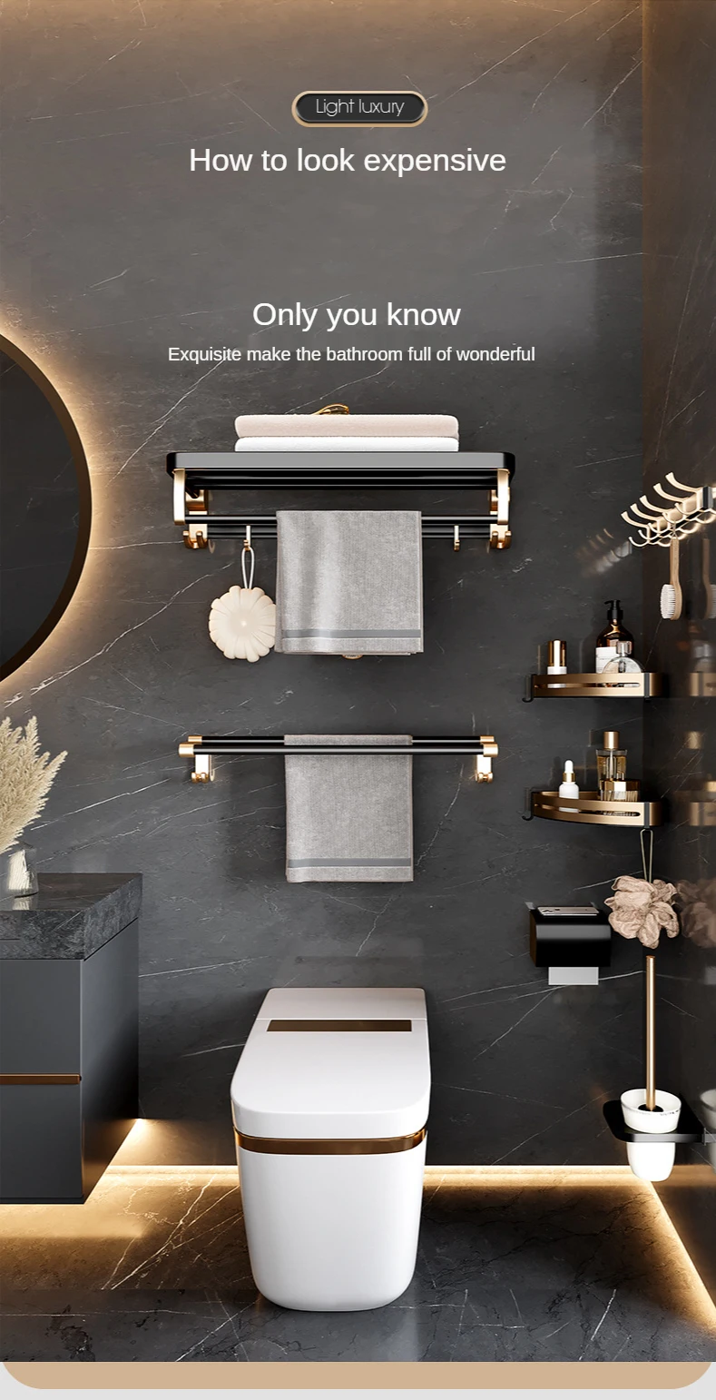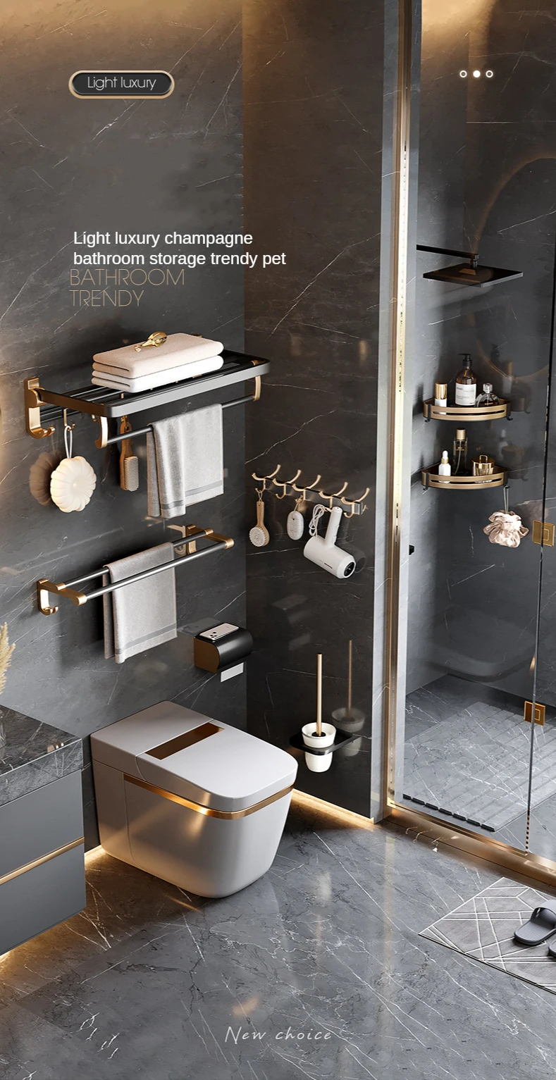 Комплекты оборудования для ванной комнаты из алюминиевого сплава, роскошный держатель для полотенец, крючок, вешалка, полка для душа, органайзер, коробка для хранения туалетной бумаги, стойка
