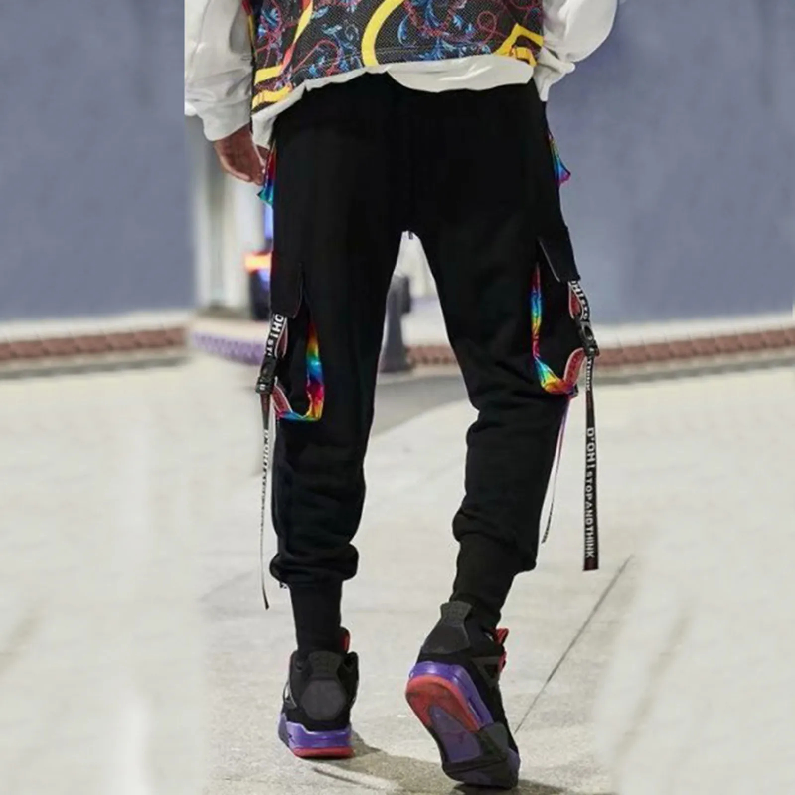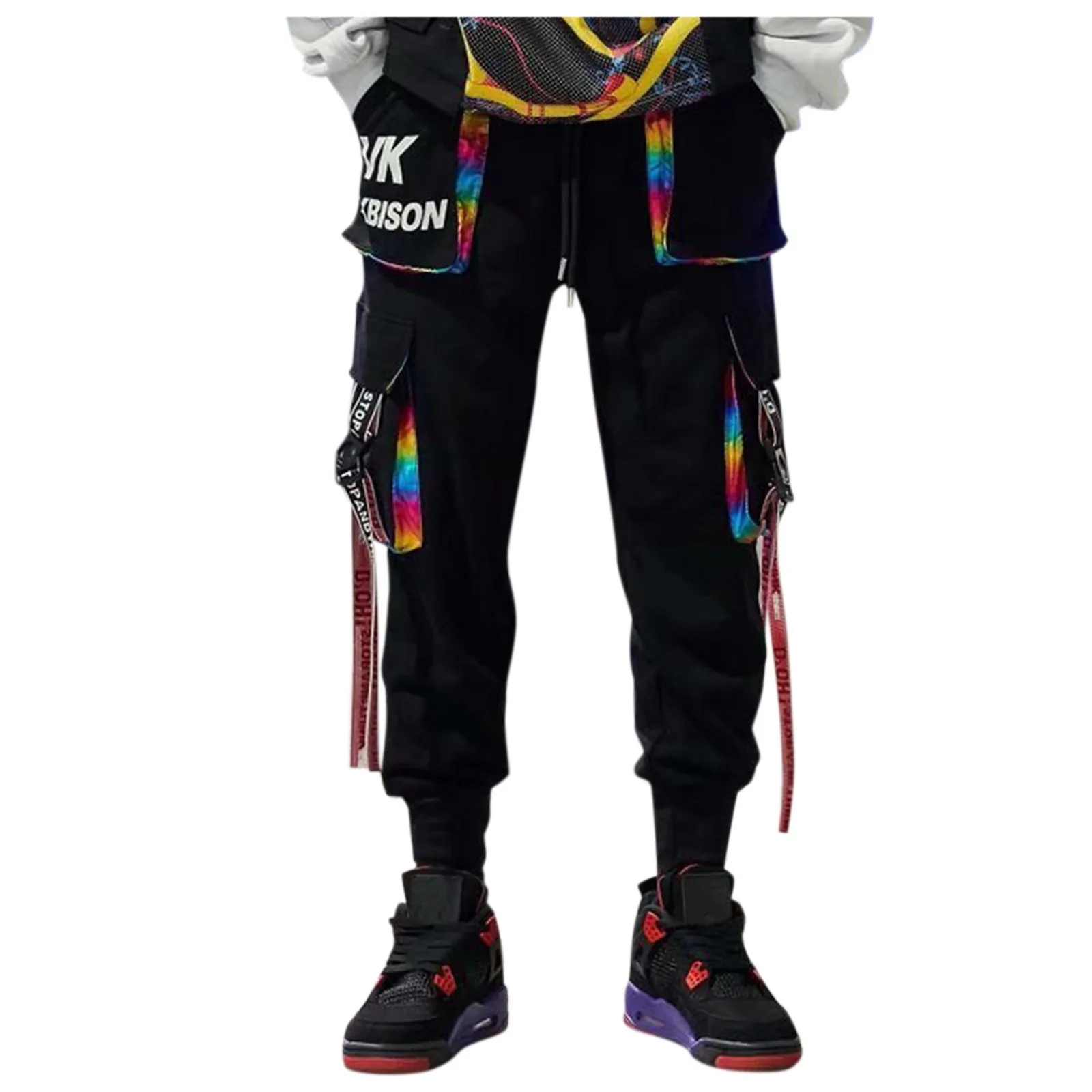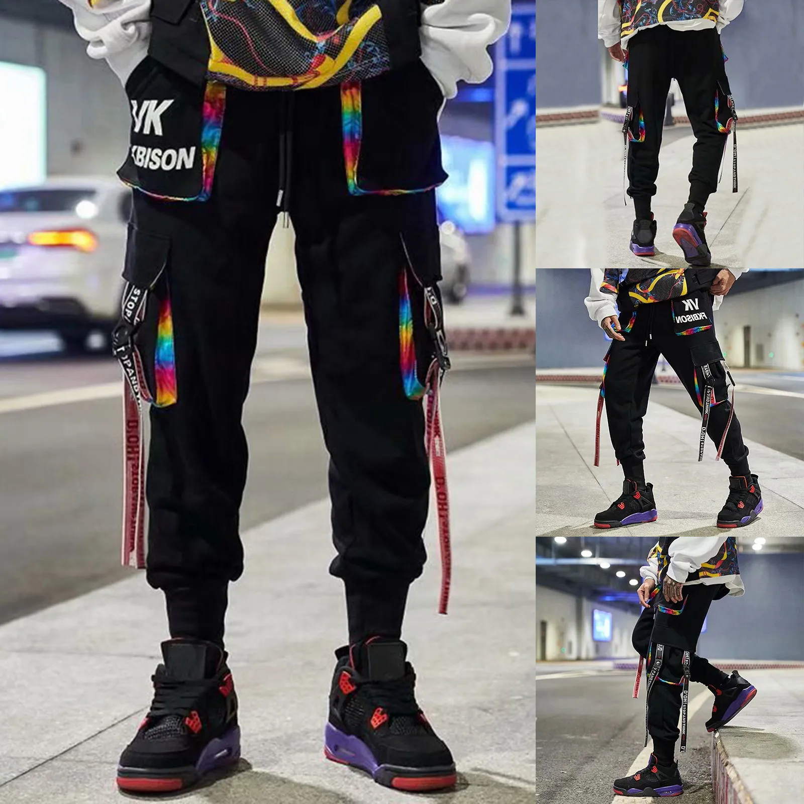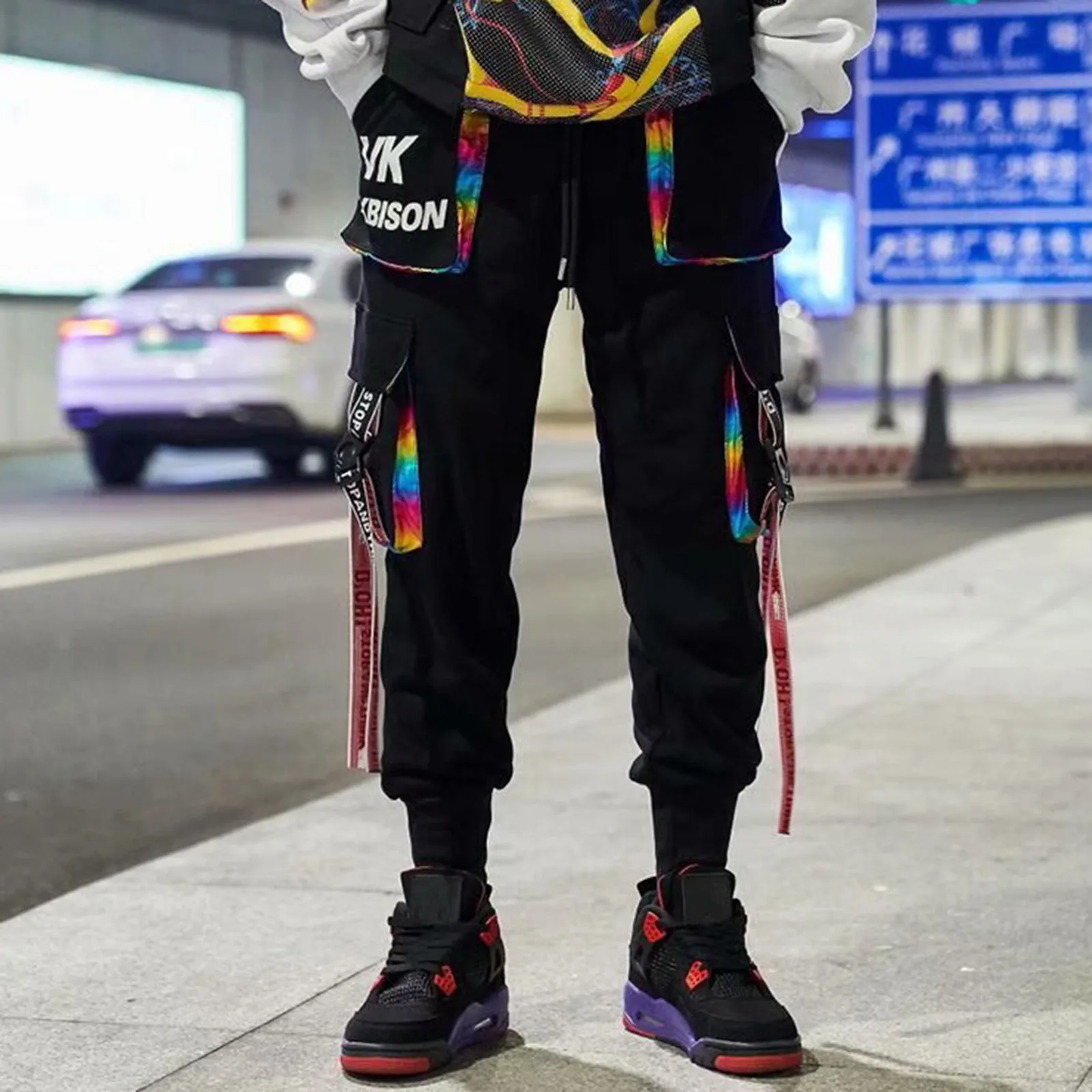 Брюки-карго мужские с лентами и карманами, повседневные тренировочные штаны в стиле Харадзюку, уличная одежда в стиле хип-хоп, Techwear, джоггеры