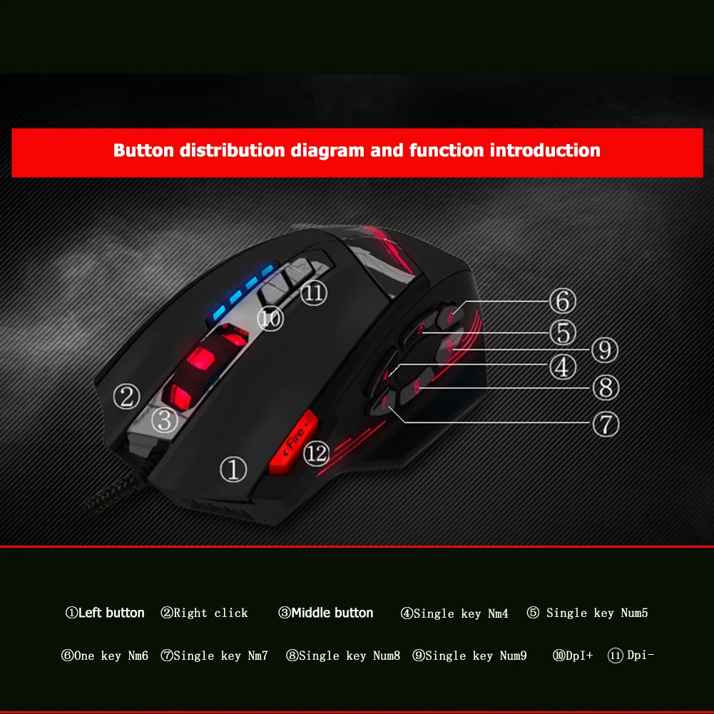 USB-мышь компьютерная ZELOTES, 12 программируемых кнопок, 4 оптичес...