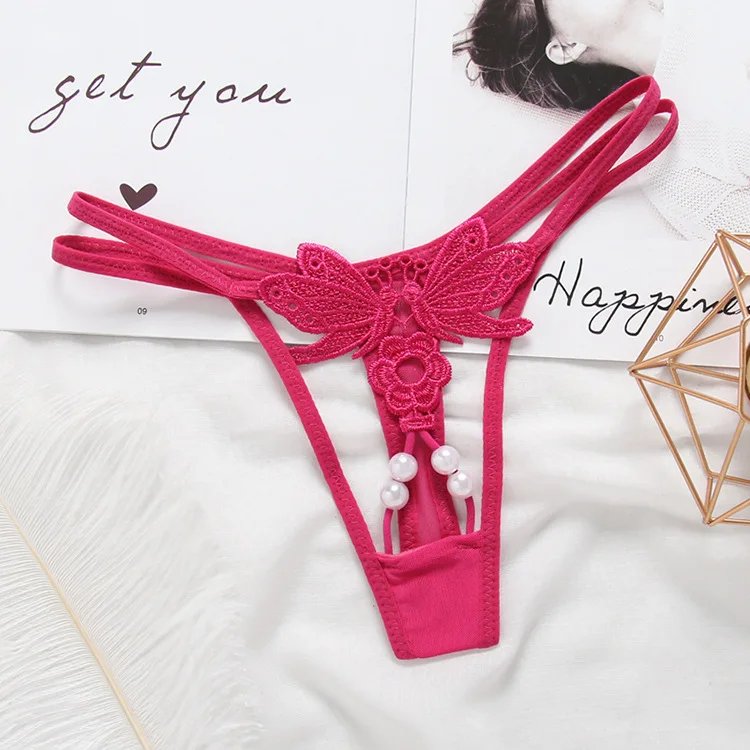 Сексуальное нижнее белье Внешняя торговля изысканная вышивка Жемчуг полые Т-образные трусы женское нижнее белье с заниженной талией полностью дышащие Т-образные брюки 2039