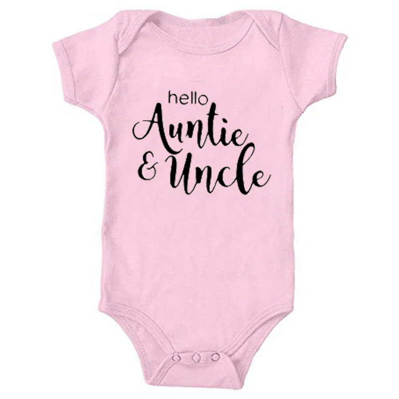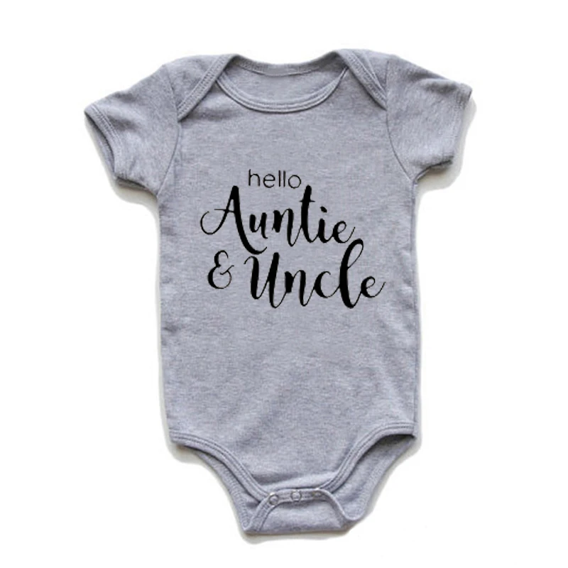 Новинка, летние милые Боди для маленьких девочек, комбинезон с надписью Hello Auntie и Дядя, комбинезон для маленьких девочек и мальчиков, хлопковая одежда, наряд