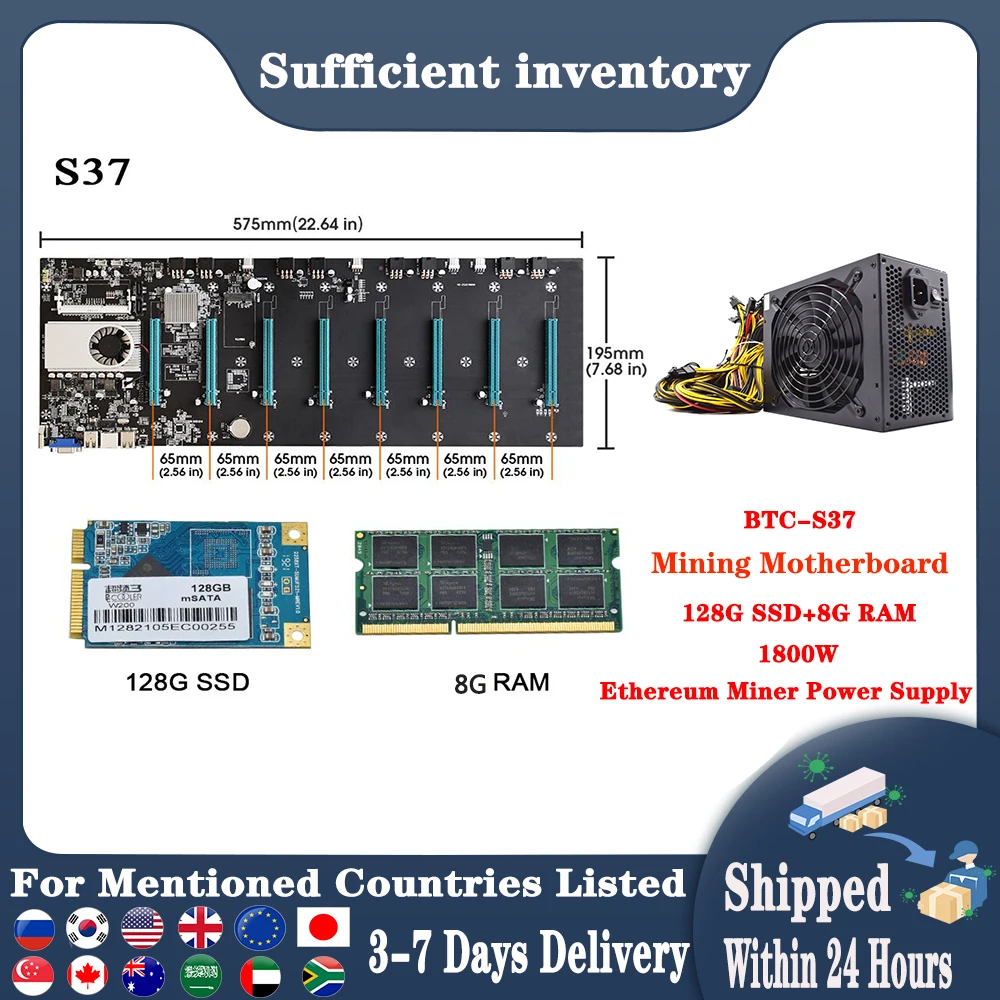 Новый набор материнской платы для майнинга ETH BTC 8 * PCIE 16X 4 * USB2.0 DDR3 слот SodimmПоддержка 106613331600 МГц S37 + SSD + ОЗУ + блок питания 1800 Вт