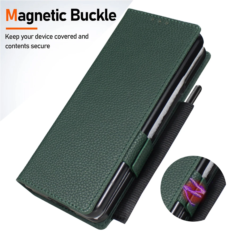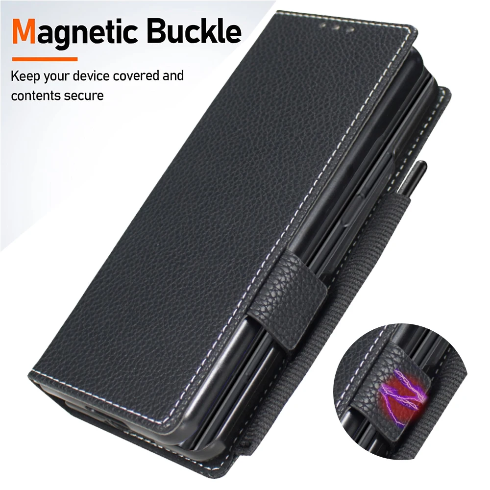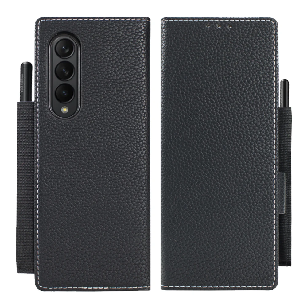 Чехол для Samsung Galaxy Z Fold 3 с держателем для ручек, кожаный б...