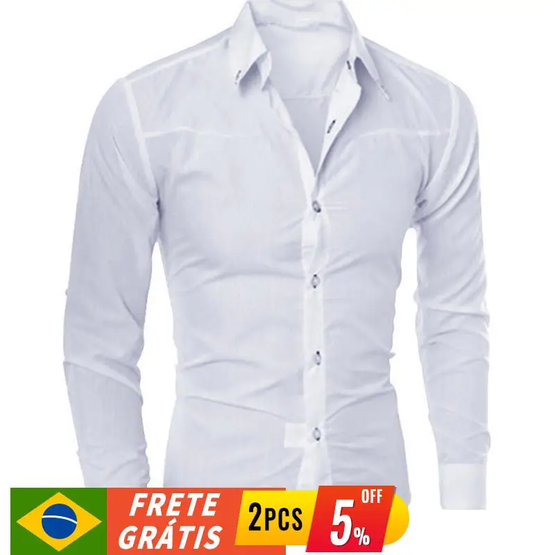 Мужская хлопковая рубашка с длинным рукавом, белая или черная однотонная приталенная деловая повседневная классическая рубашка, новинка 2021