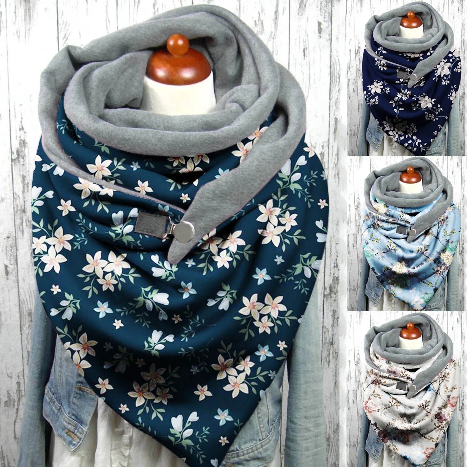 Женский шарф, одежда для хиджаба, бандана, 2021, модная, зимняя, женская, с цветочным принтом, на пуговицах, мягкая, повседневная, мягкая, теплая, на шее, длинная шаль