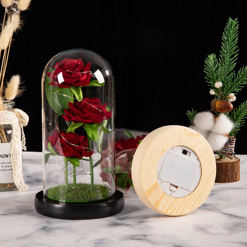 Новый светодиодный светильник в виде вечной розы с 3 головками, красавица чудовище со стеклянной крышкой, Свадебный домашний декор на День святого Валентина, подарок на день матери
