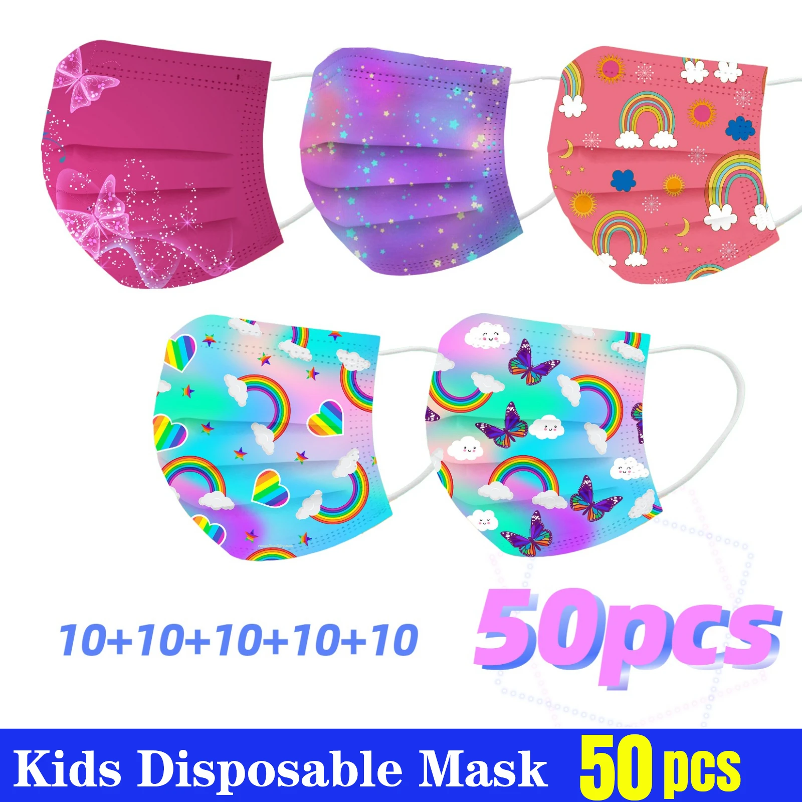 50 шт., маскарильяс для детей, детская маска с радужным принтом, од...